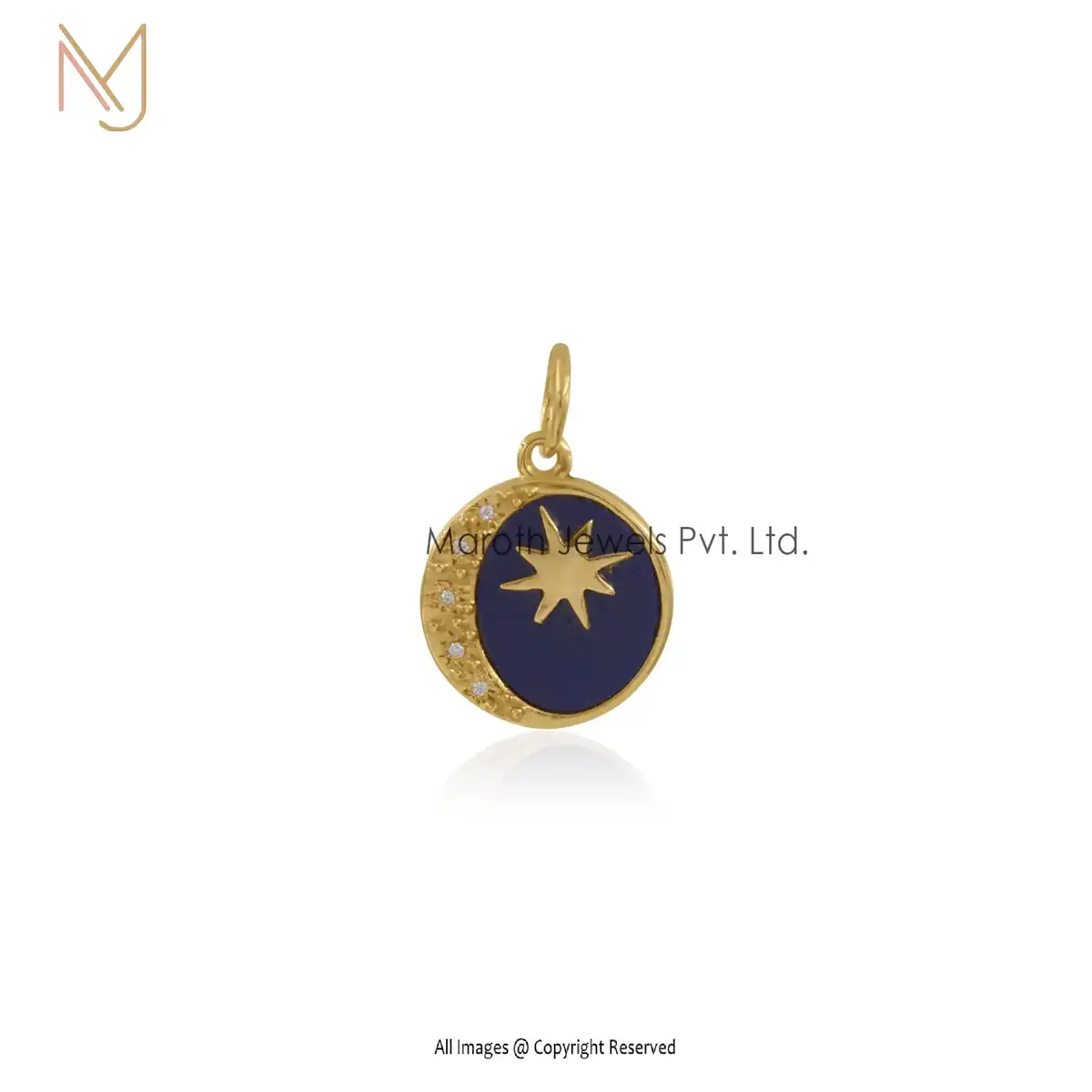 14K Yellow Gold Moissanite & Turquoise Moon Star Disc Pendant Jewelry USA