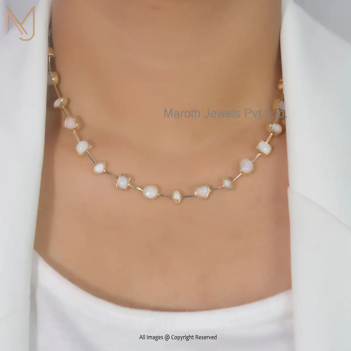 14k Yellow Gold Moonstone Light Weight Necklace Jewelry Supplier