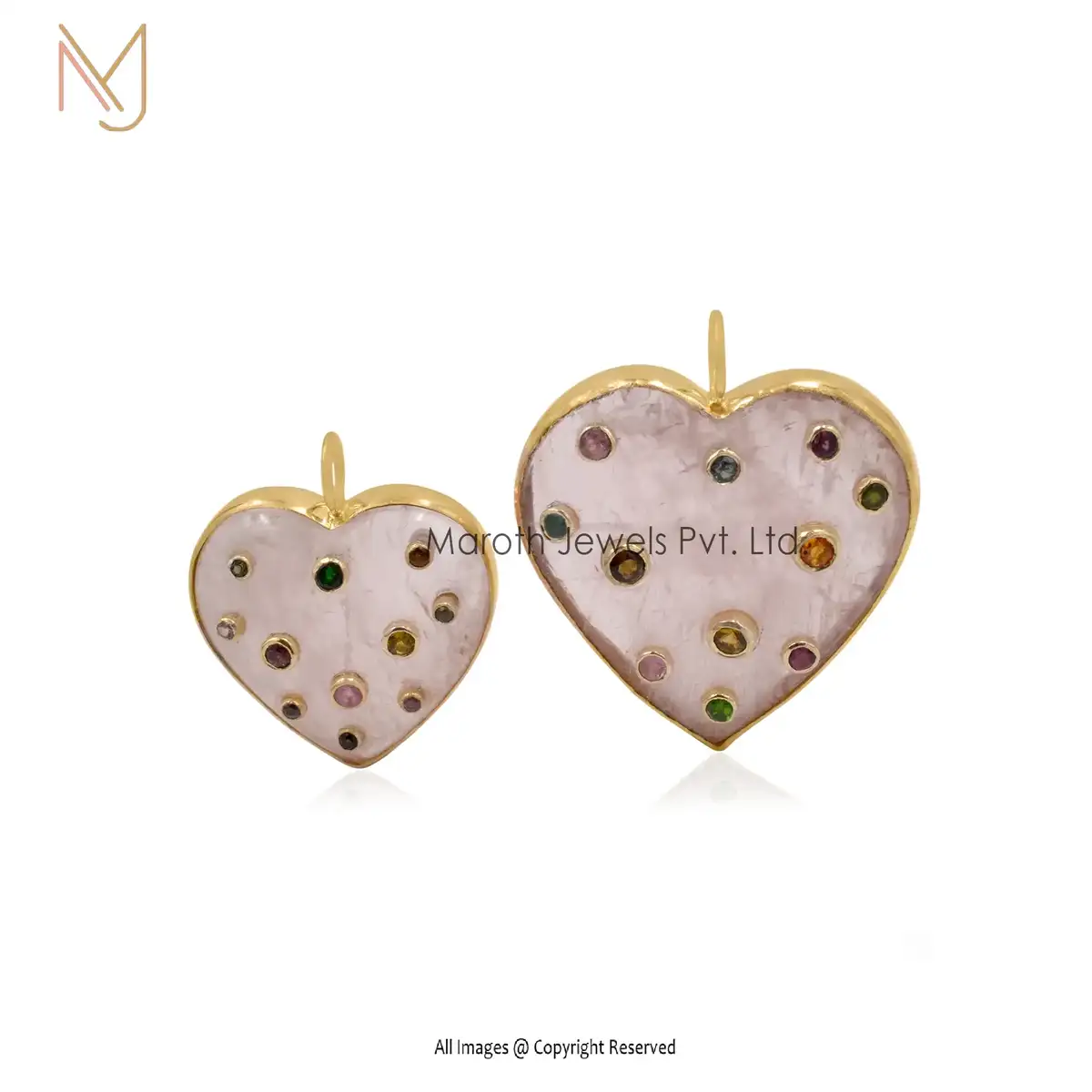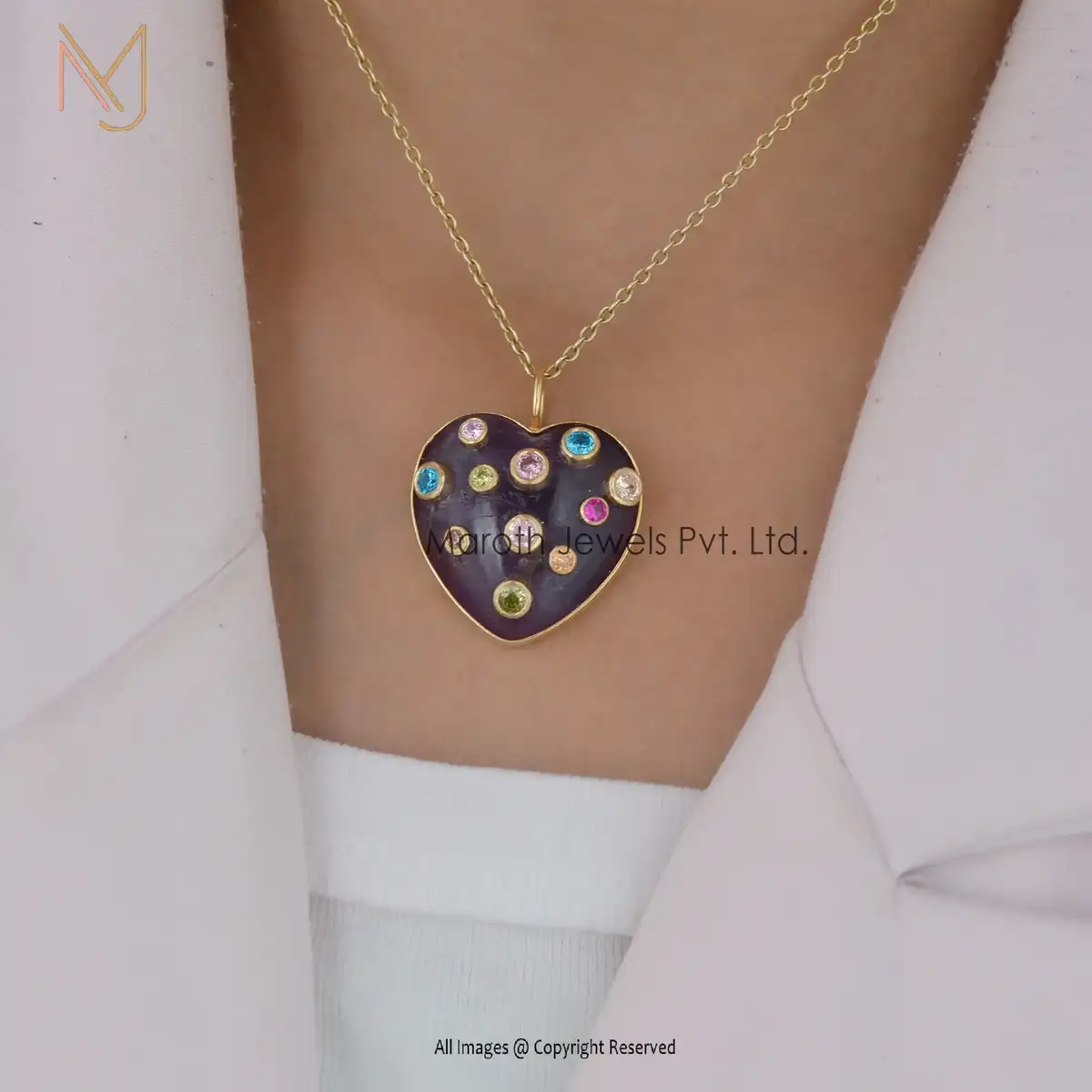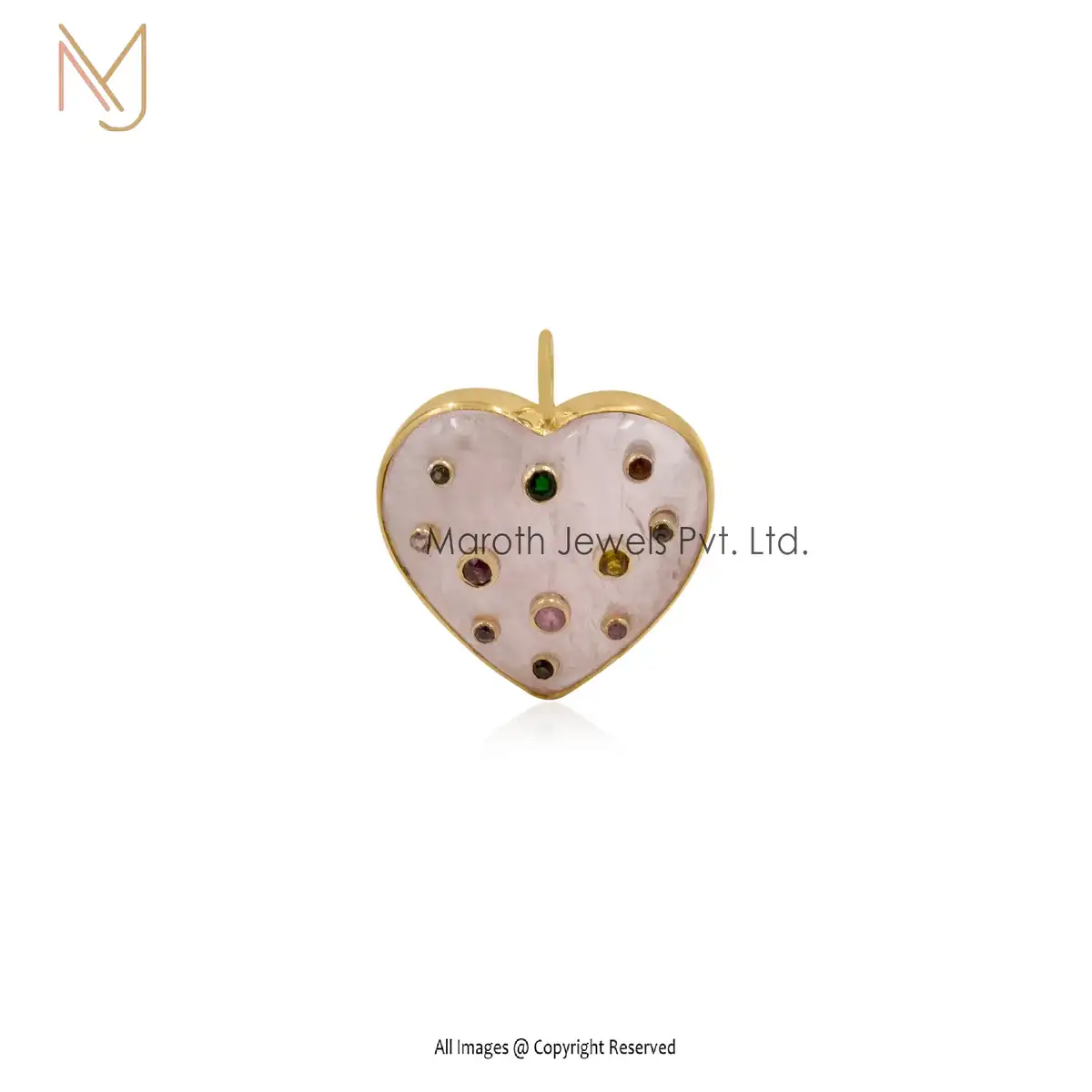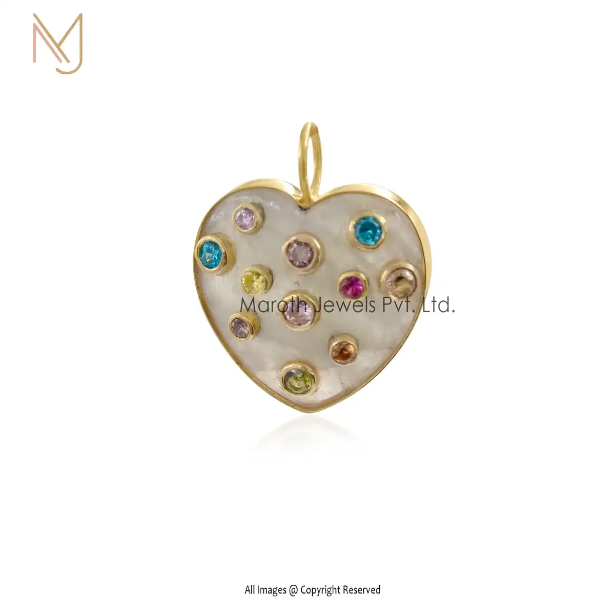 14K Yellow Gold Moonstone Multi Color Stone Heart Pendant Jewelry Manufacturer