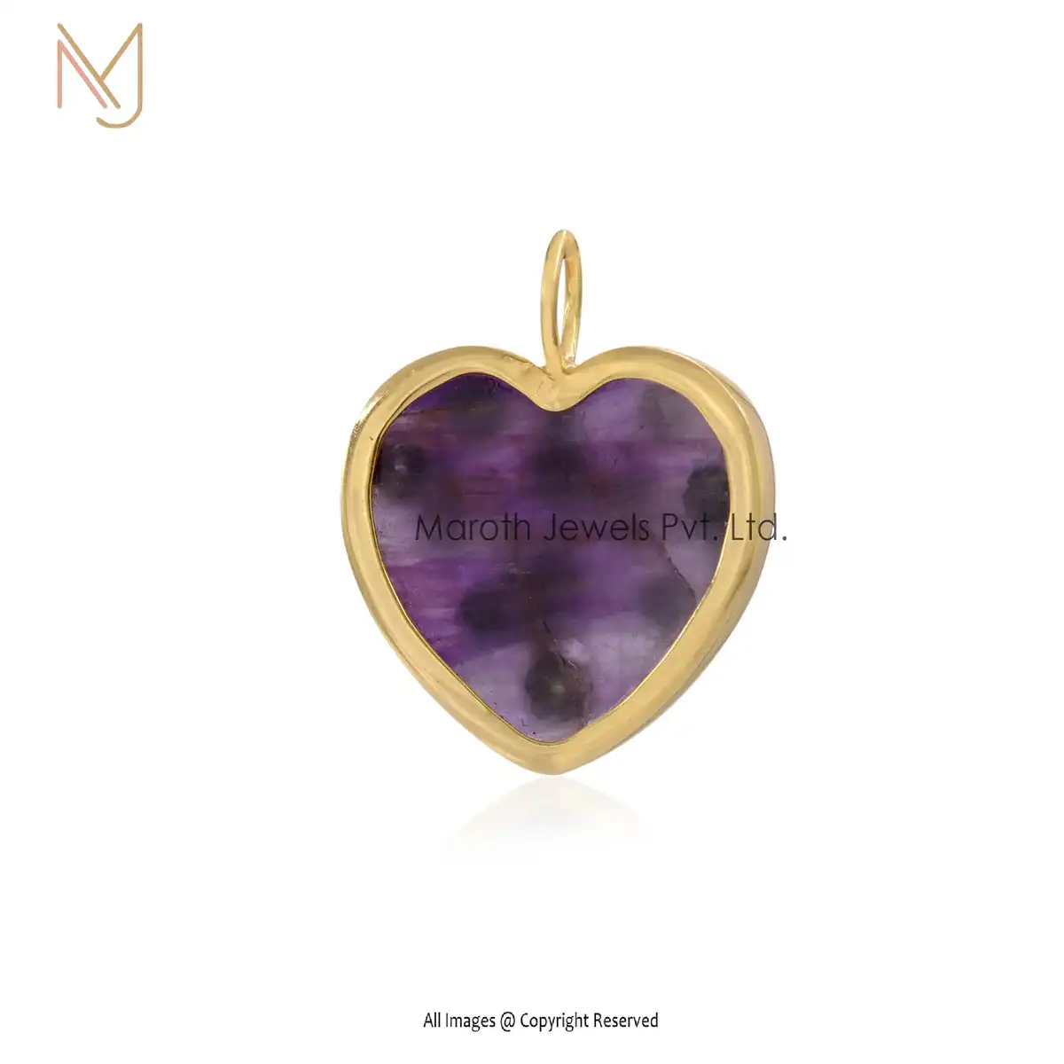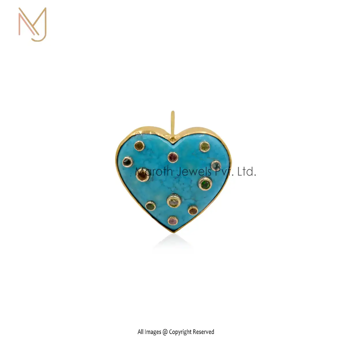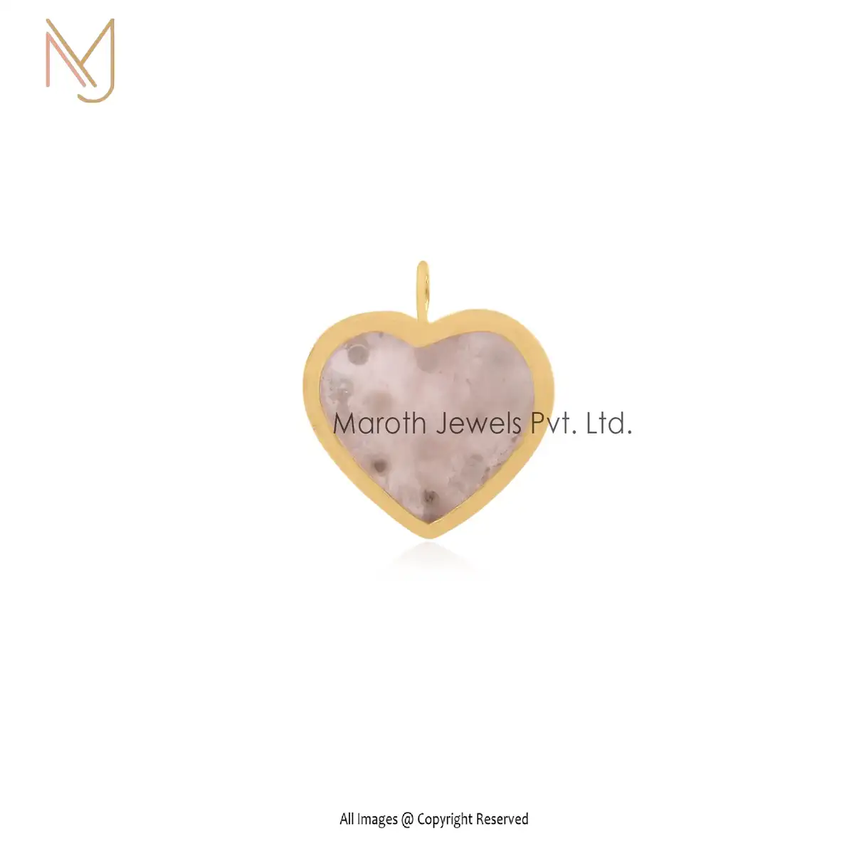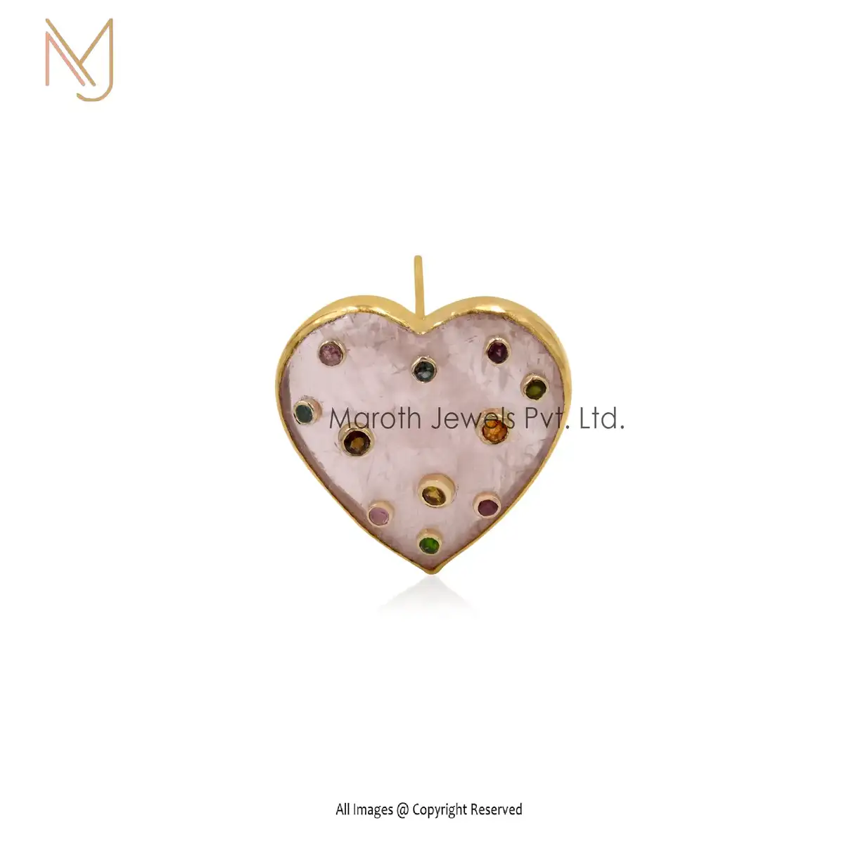 14K Yellow Gold Moonstone Multi Color Stone Heart Pendant Jewelry Manufacturer
