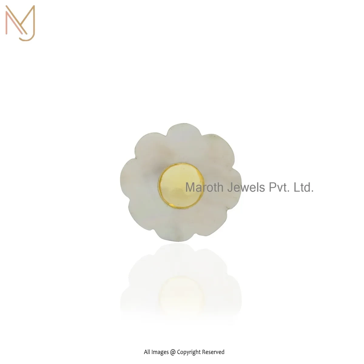 14K Yellow Gold Mother Of Pearl And Citrine Gemstone Flower Pendant Custom Jewelry