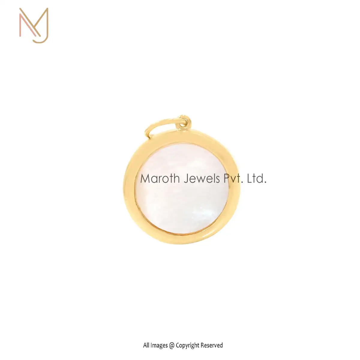 14K Yellow Gold Mother of Pearl & Yellow Sapphire Gemstone Zodiac Disc Pendant USA