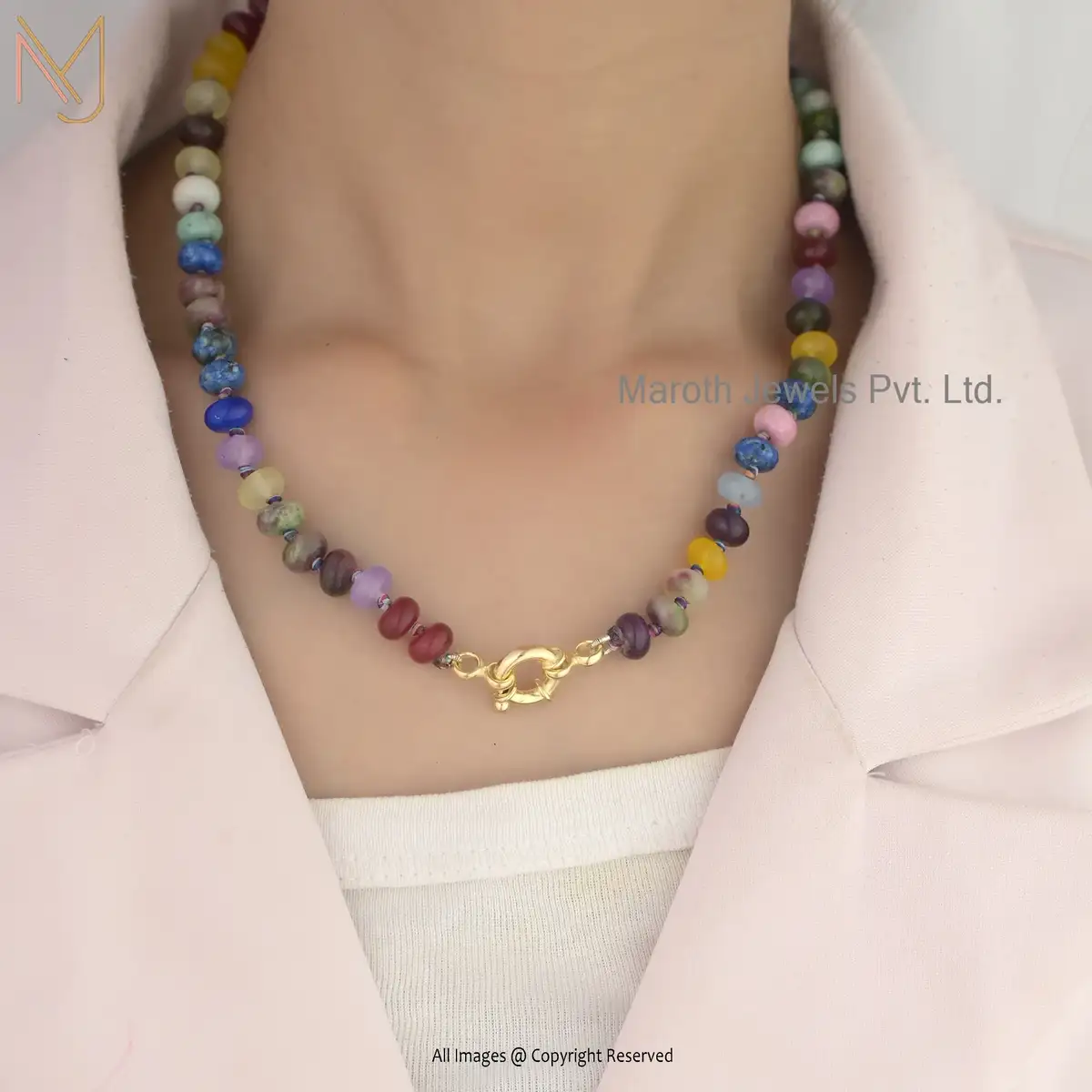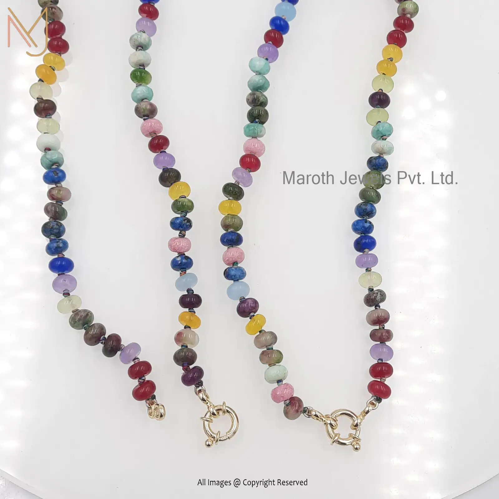 14K Yellow Gold Multi Beads Spring Lock Necklace Jewelry Supplier