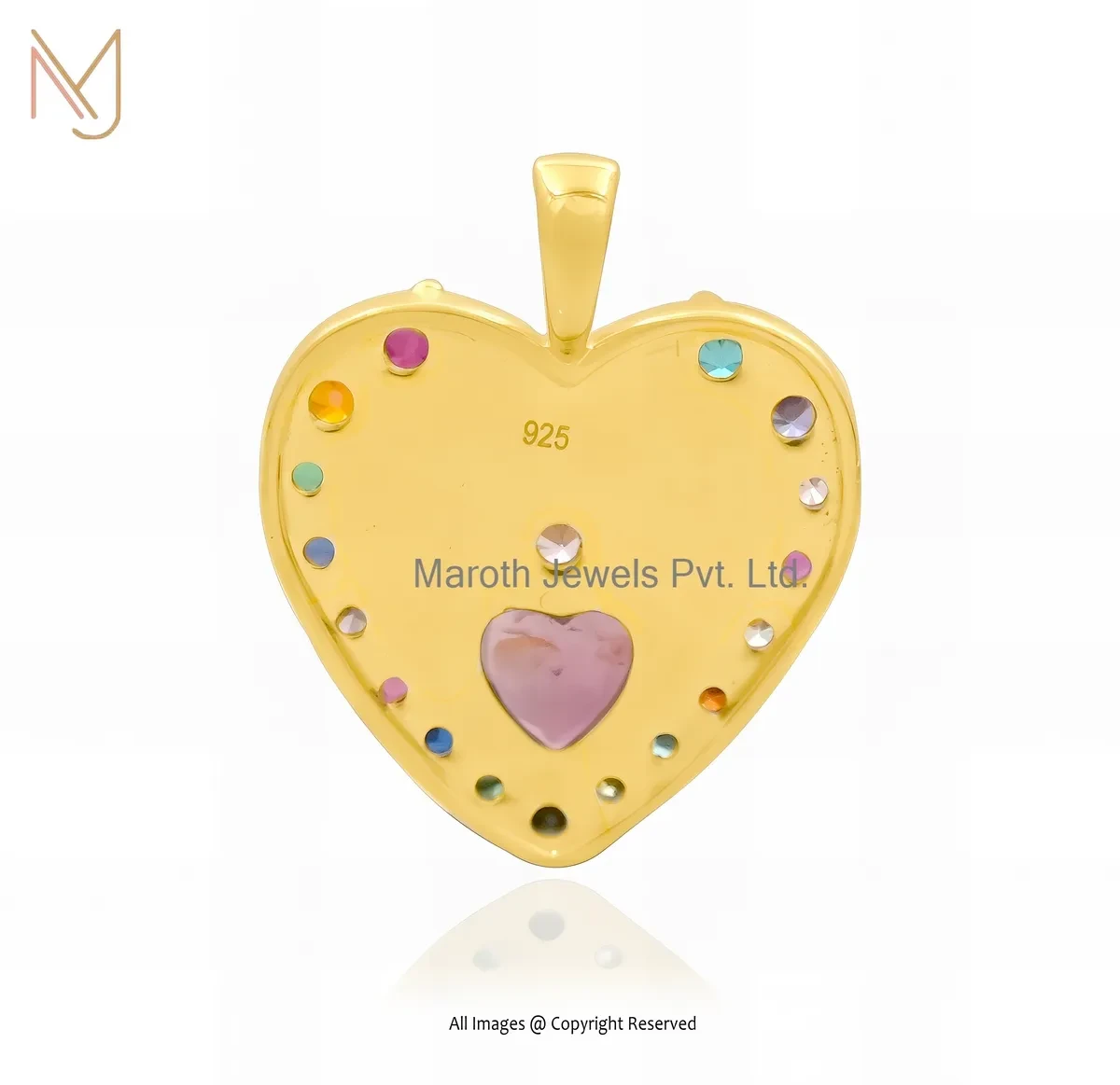 14K Yellow Gold Multi Gemstone Fluted Heart Pendant Manufacturer