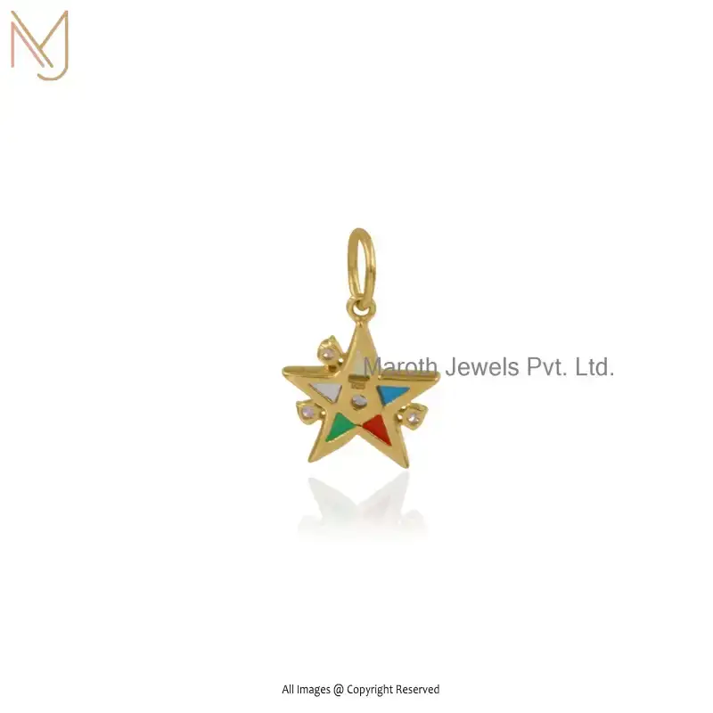 14K Yellow Gold Multi Gemstone Star Charm Pendant Manufacturer