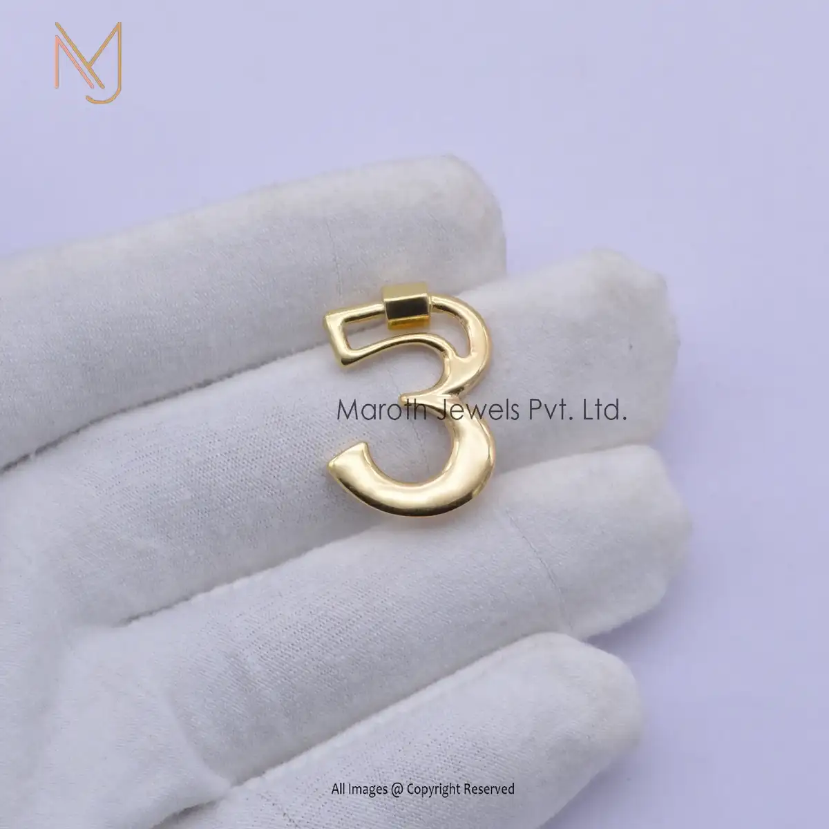 14K Yellow Gold Number 3 Letter Carabiner Lock Manufacturer