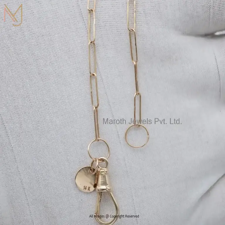 14K Yellow Gold Paperclip Chain With Swivel Push Lock With Tag Necklace Manufacturer