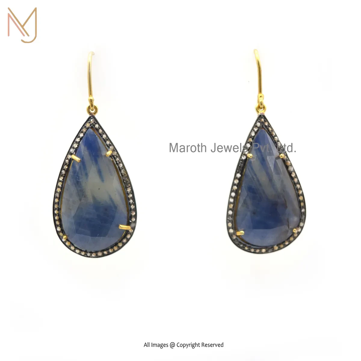 14K Yellow Gold Pave Diamond Blue Sapphire Dangle Earring Manufacturer