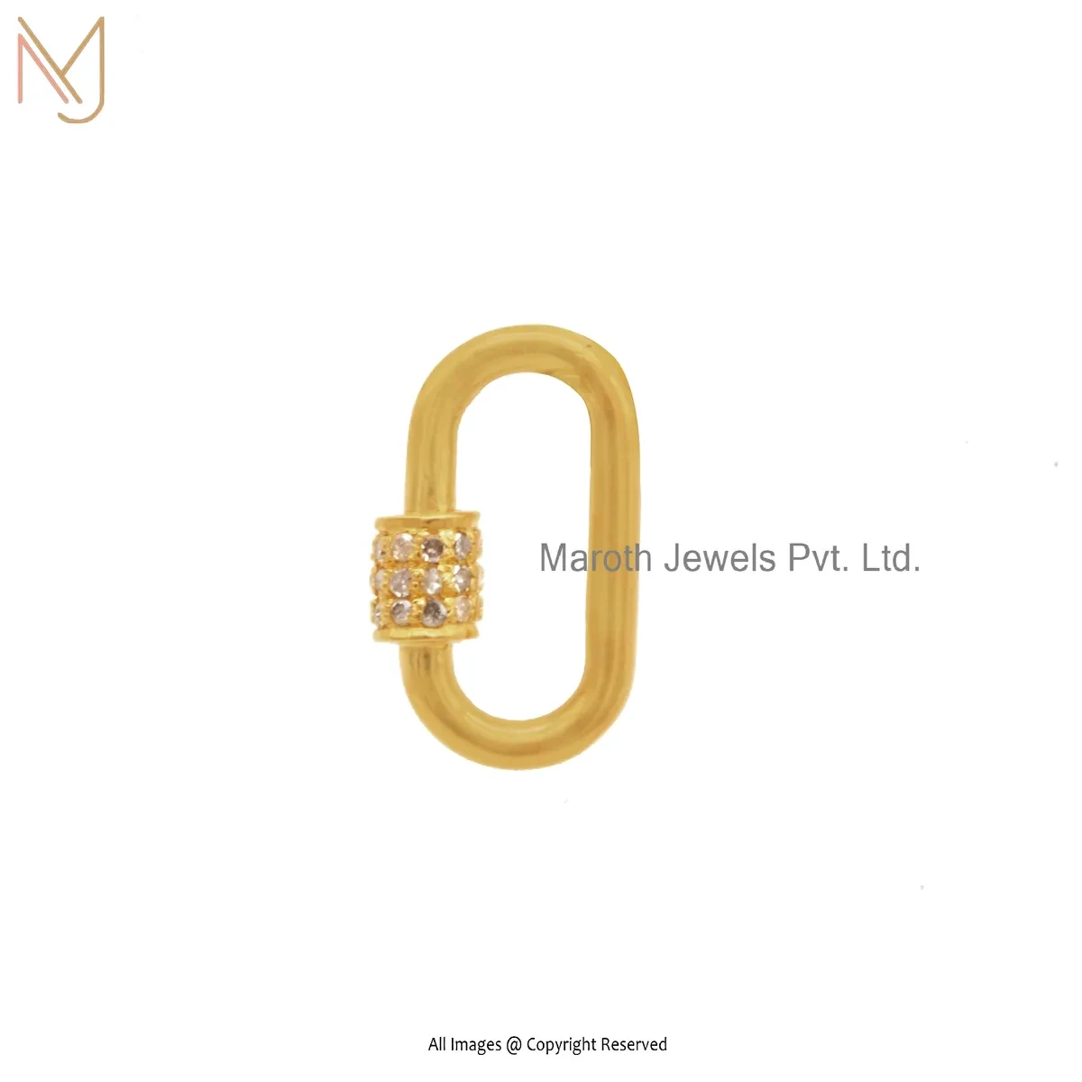 14K Yellow Gold Pave Diamond Carabiner Lock Custom Jewelry