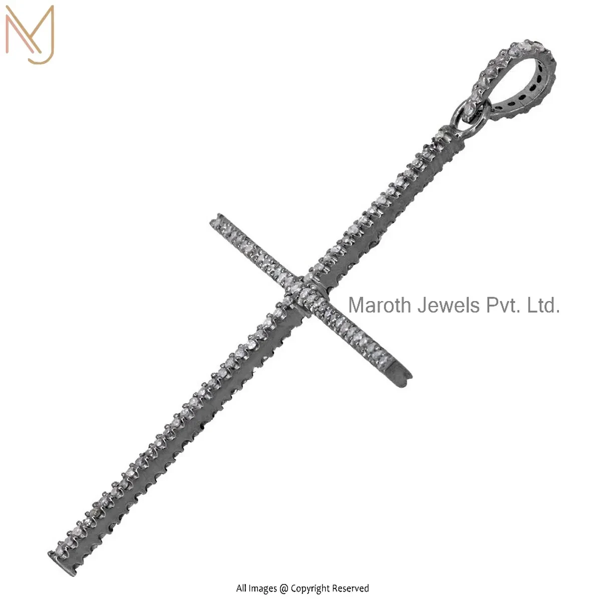 14K Yellow Gold Pave Diamond Cross Pendant Custom Jewelry