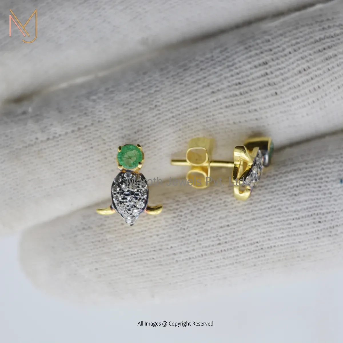 14K Yellow Gold Pave Diamond Emerald Gemstone Lotus Stud Earring Manufcaturer
