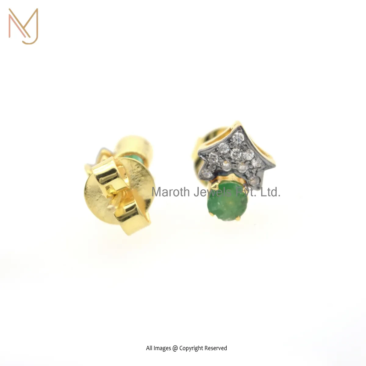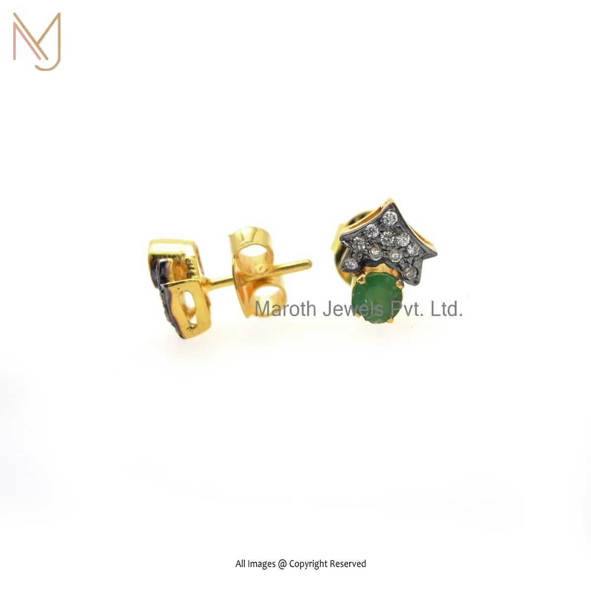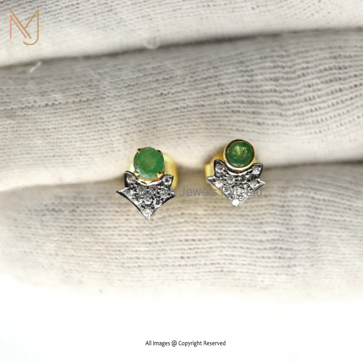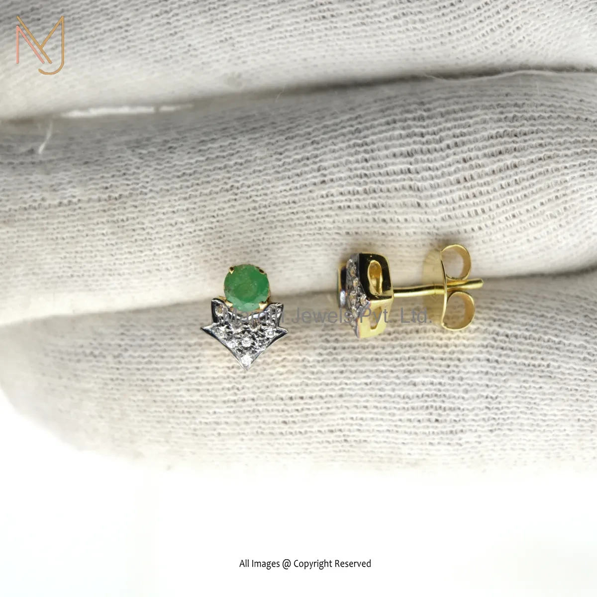 14K Yellow Gold Pave Diamond Emerald Gemstone Stud Earring Manfacturer