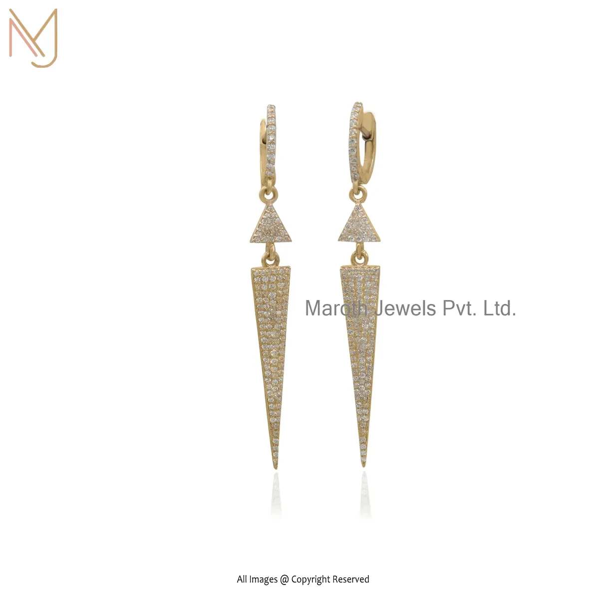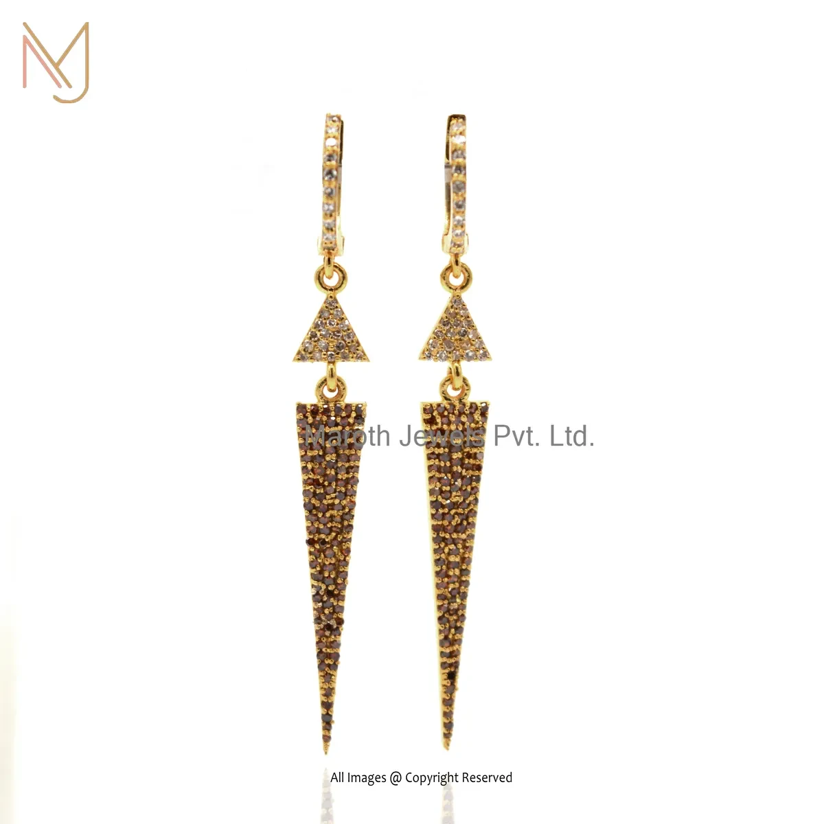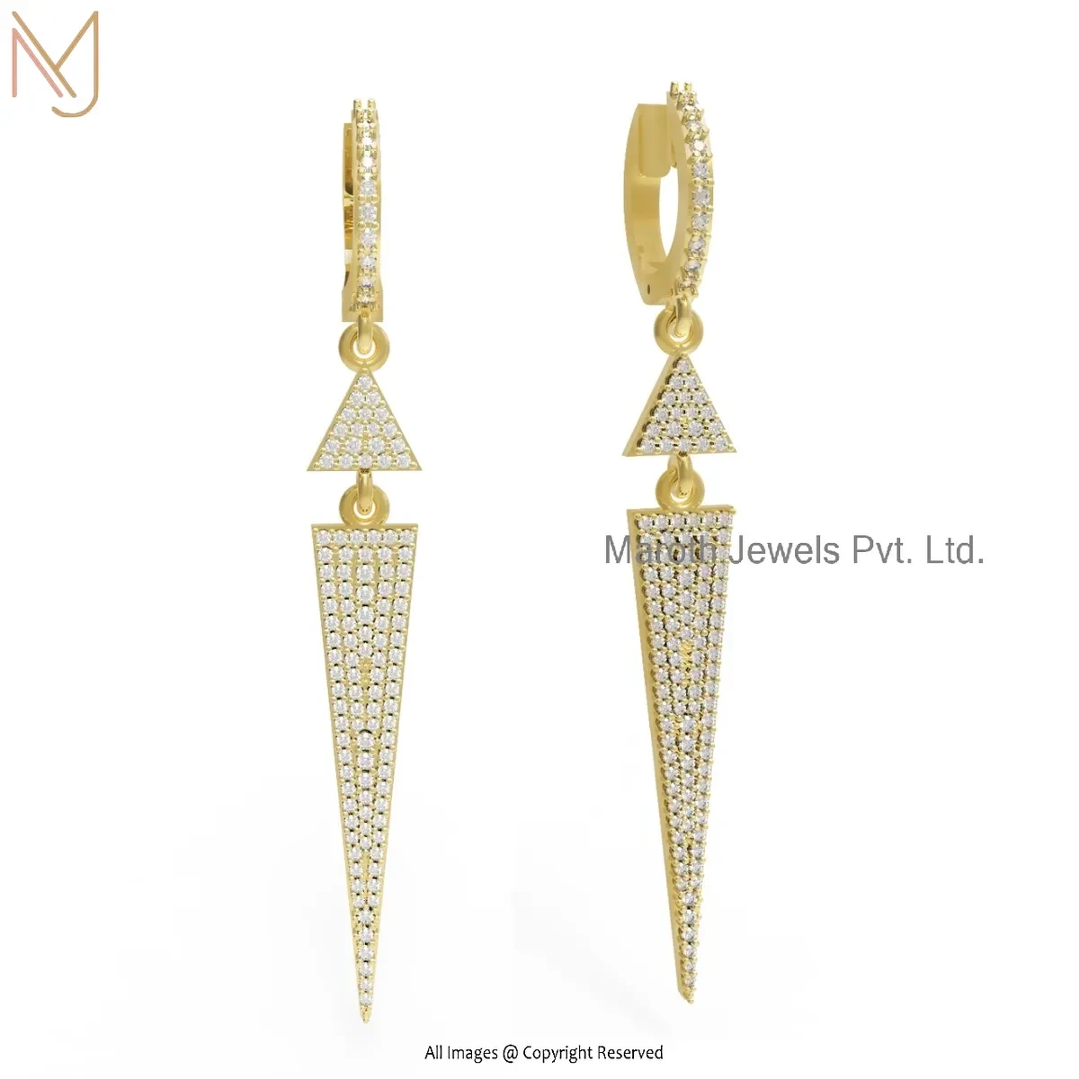 14K Yellow Gold Pave Diamond Gemstone Handmade Designer Spike Dangle Earring USA