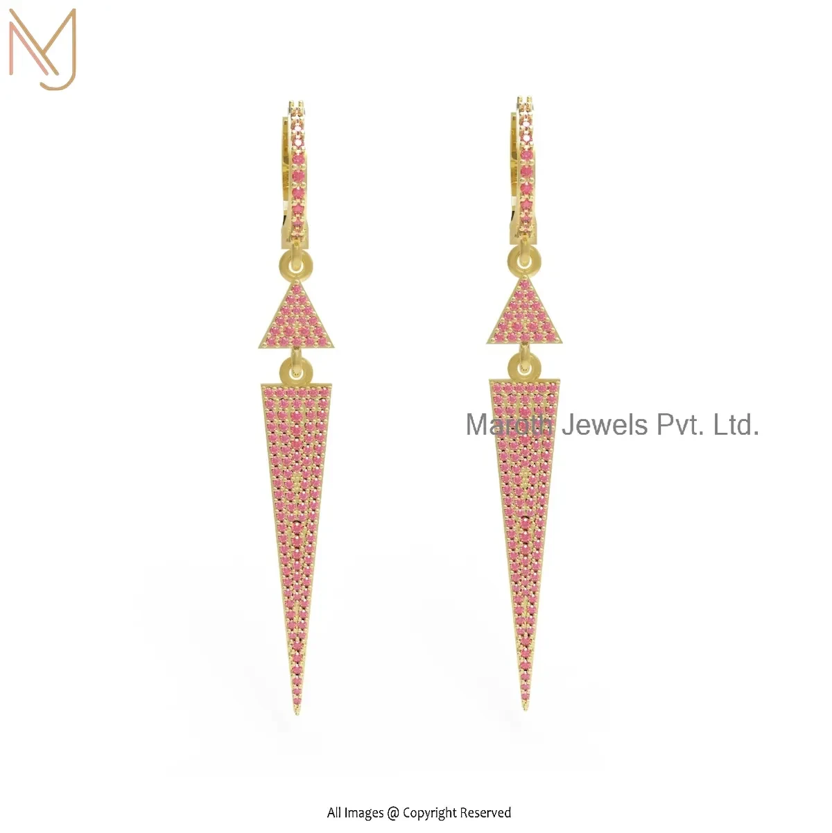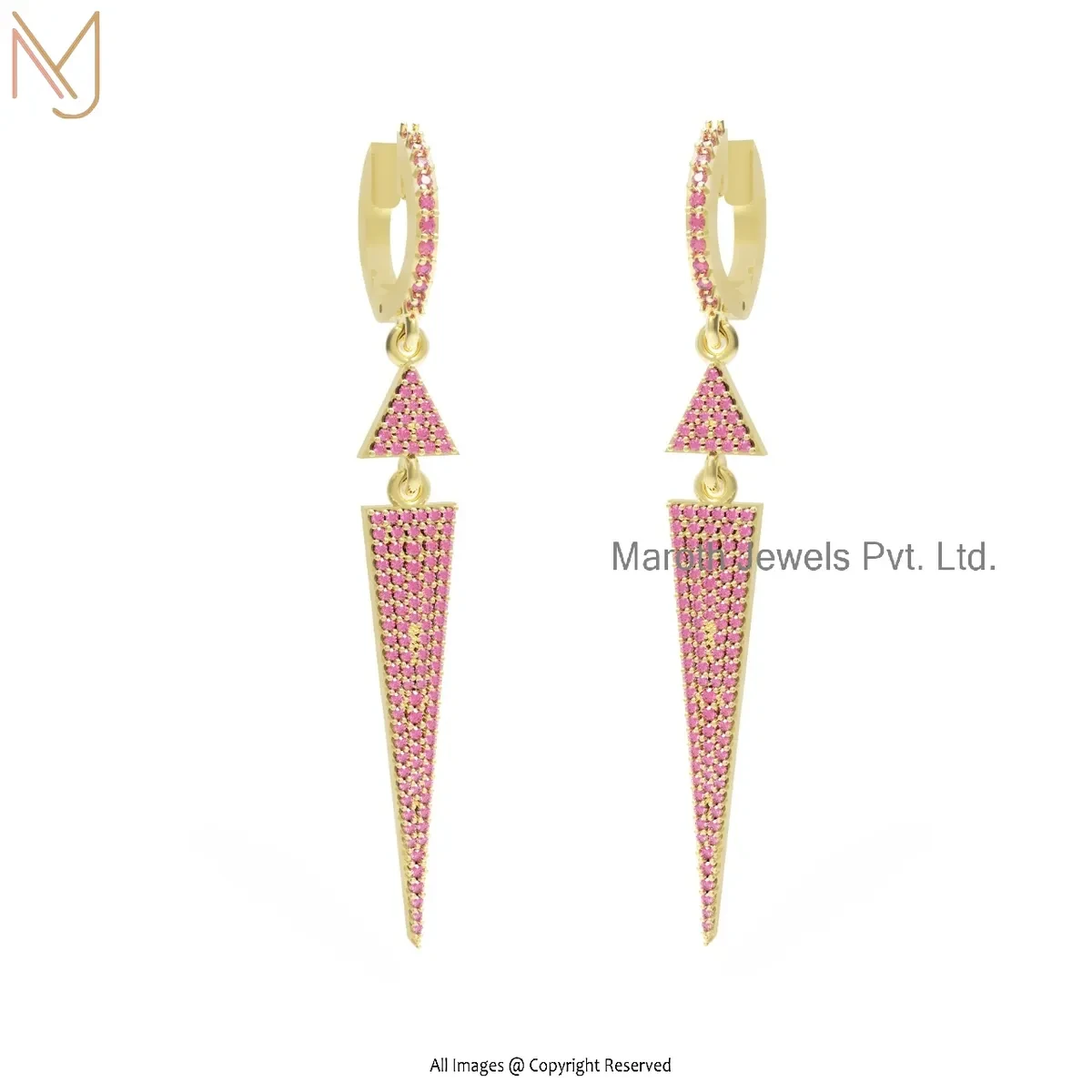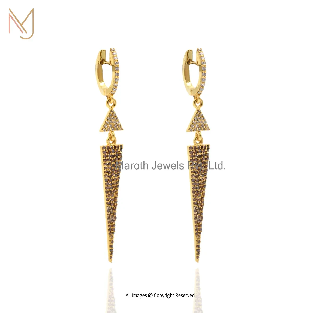 14K Yellow Gold Pave Diamond Gemstone Handmade Designer Spike Dangle Earring USA