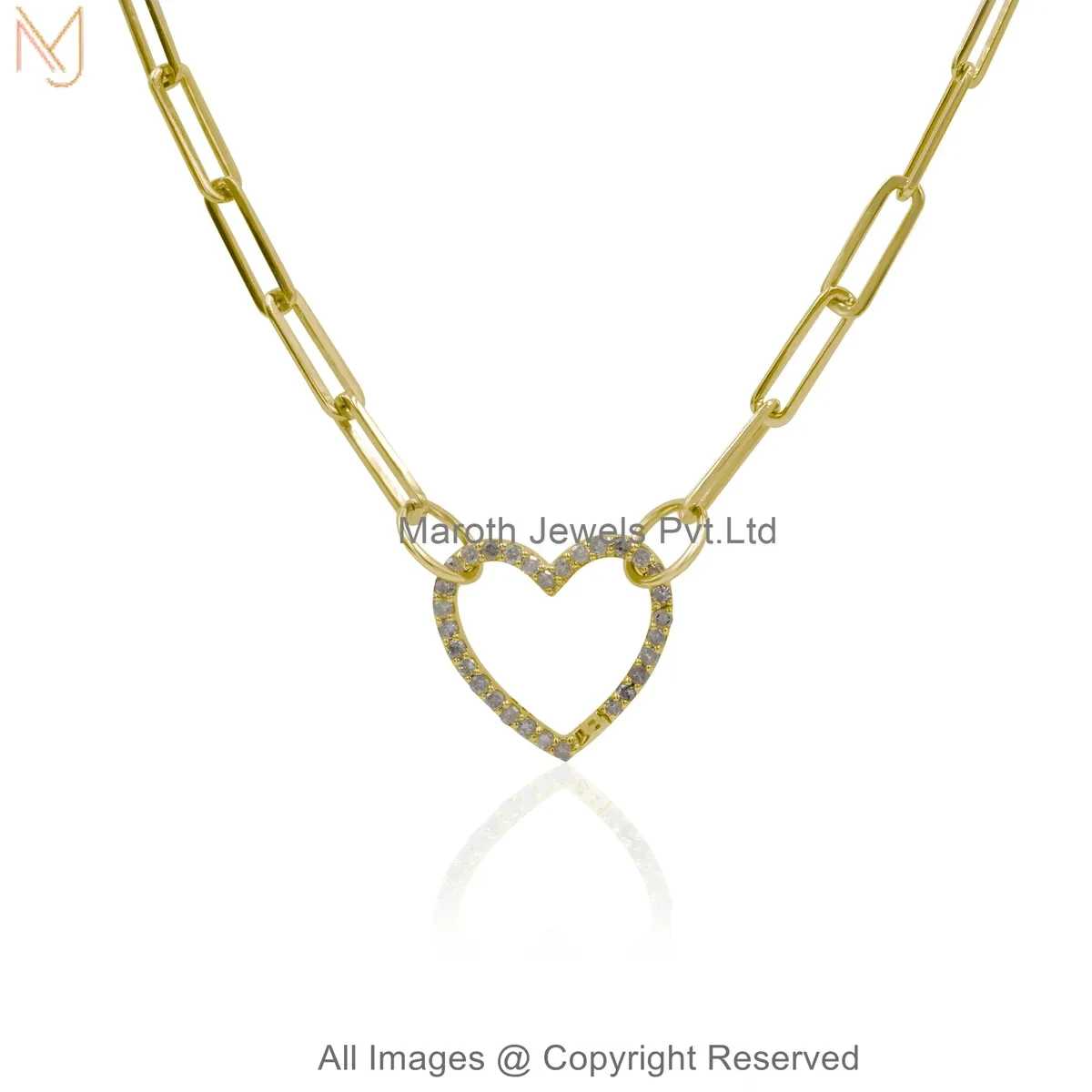 14K Yellow Gold Pave Diamond Gemstone Heart Charm Holder Jewelry Manufacturer