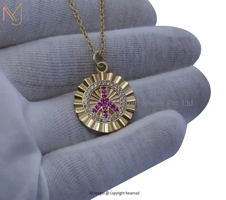 14K Yellow Gold Pink Cubic Zircon Gemstone Pendant Custom Jewelry