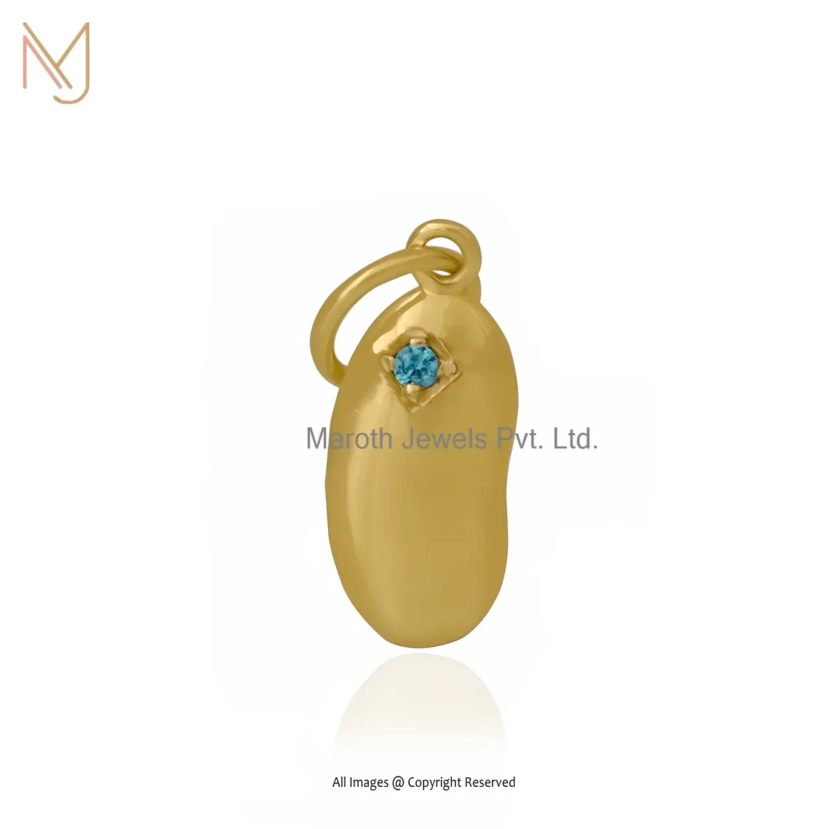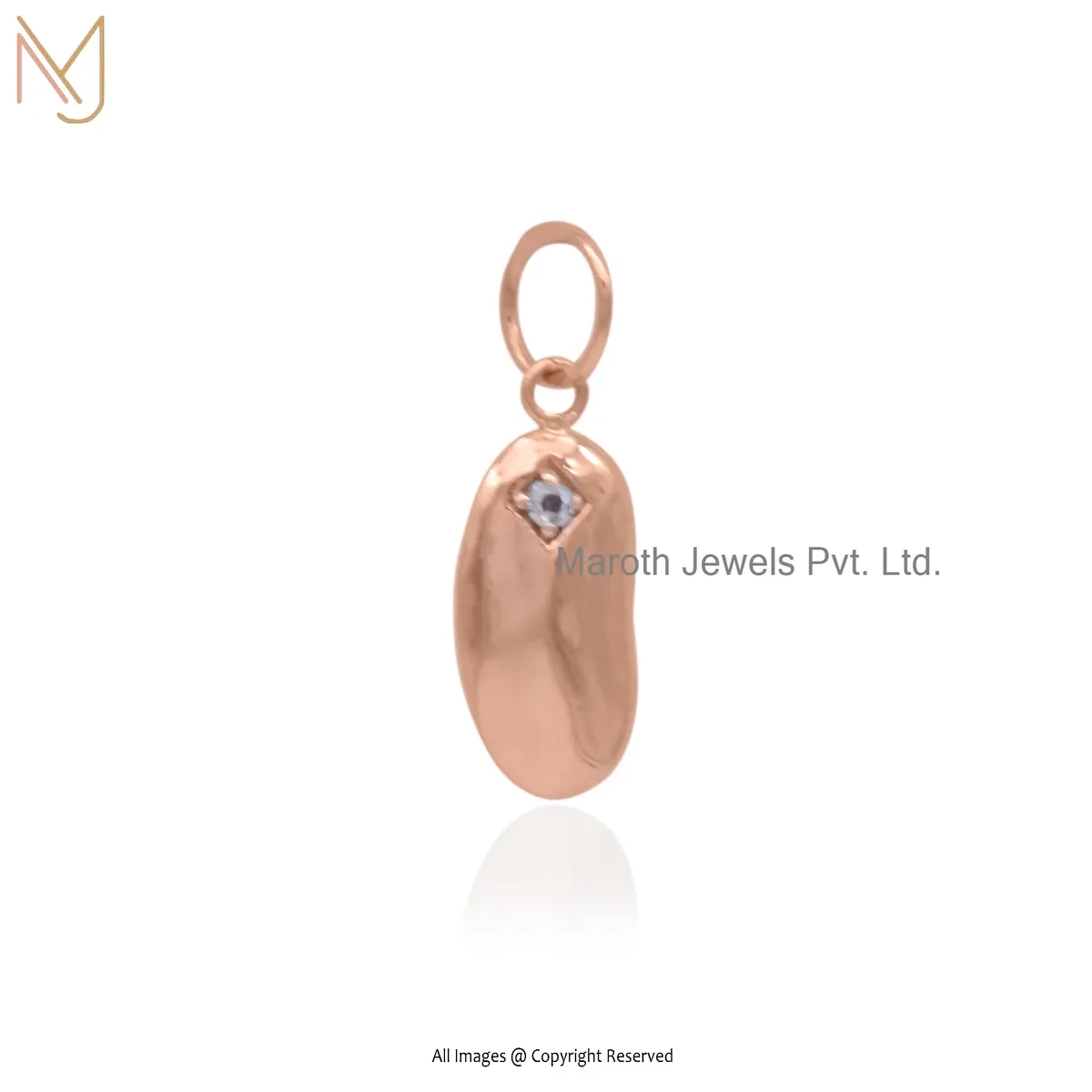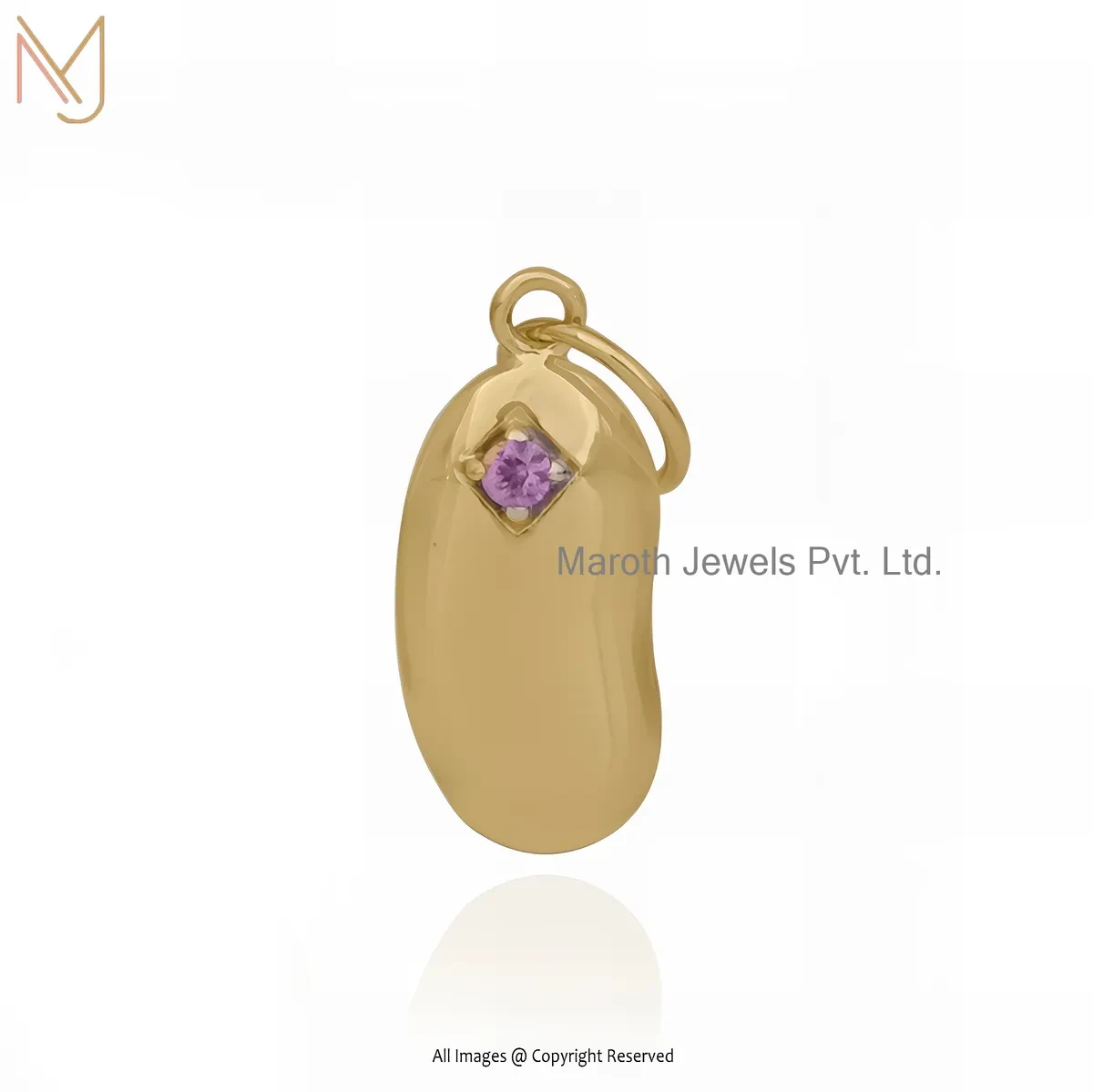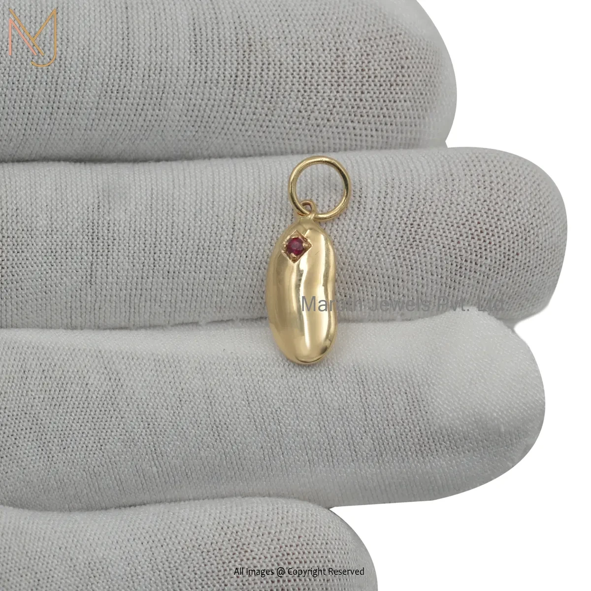 14K Yellow Gold Pink Sapphire Kidney Bean Charms Pendant Jewelry Manufacturer