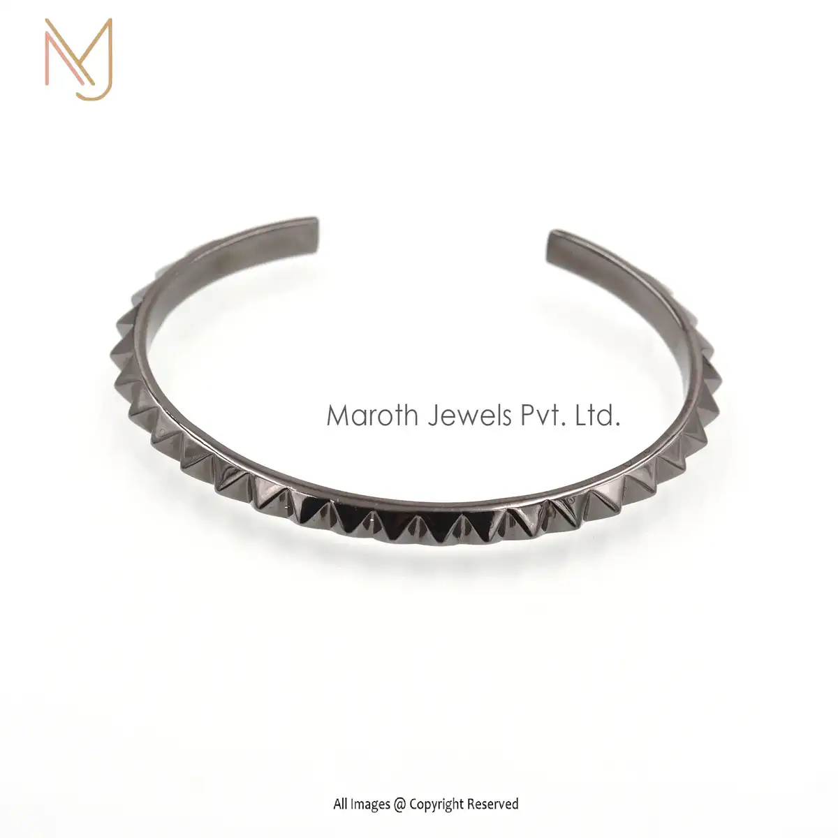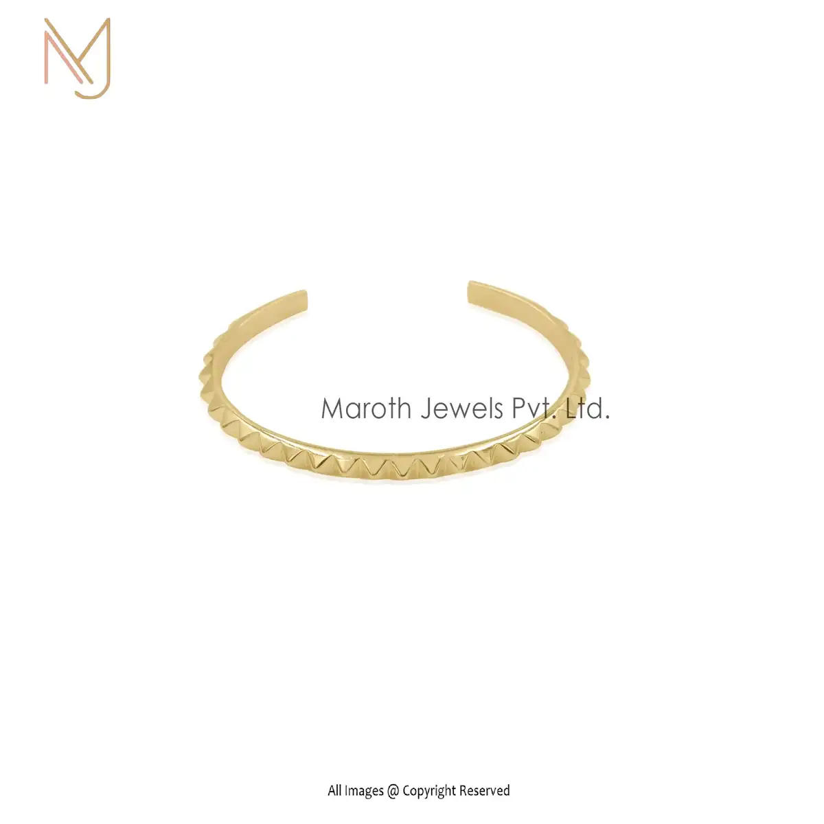 14K Yellow Gold Pyramid Spike Open Bangle Jewelry Manufacturer