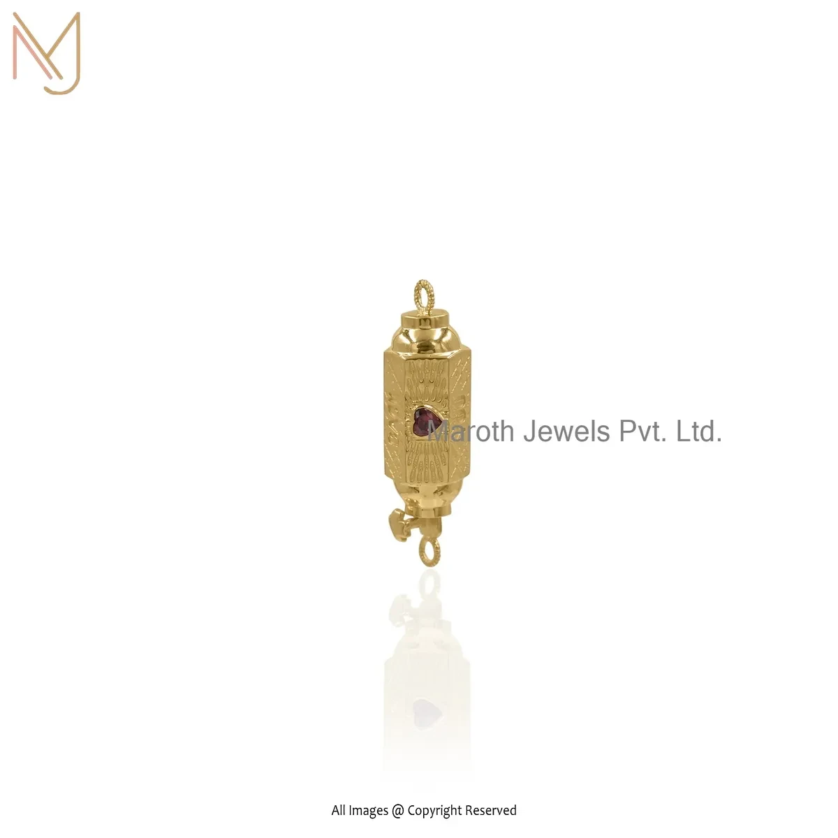 14K Yellow Gold Red Cubic Zircon Amulet Pendant Manufacturer