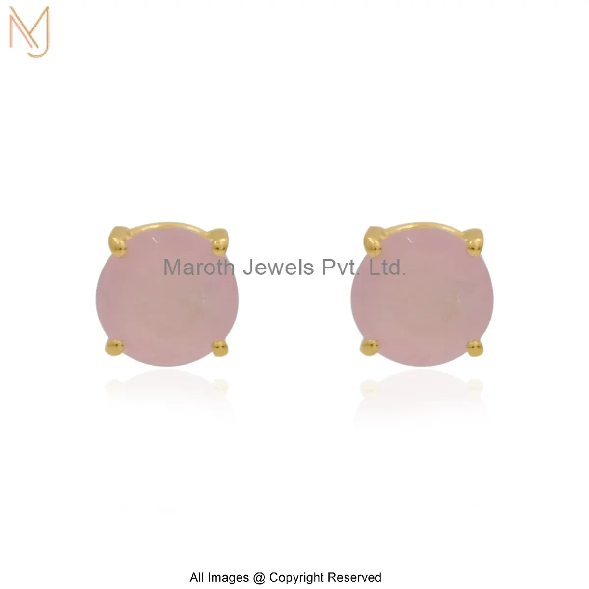 14K Yellow Gold Rose Glow Round Stud Earrings Custom Jewelry