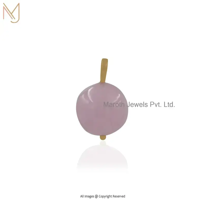 14K Yellow Gold Rose Quartz & Diamond Round Ball Pendant Custom Jewelry