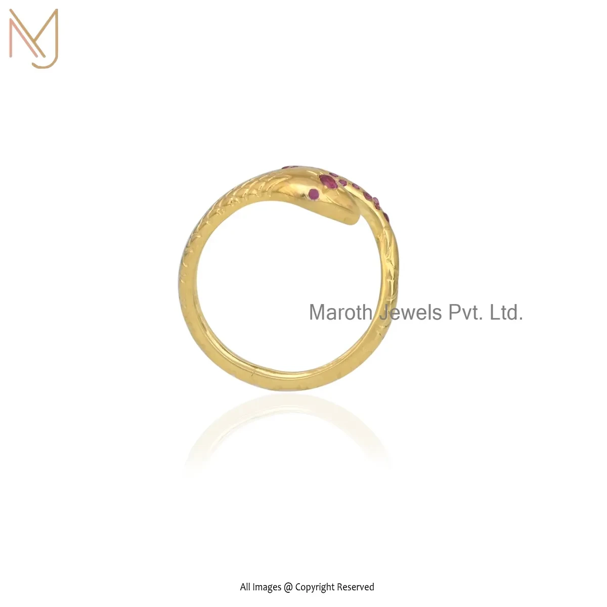 14K Yellow Gold Ruby Snake Ring Custom Jewelry