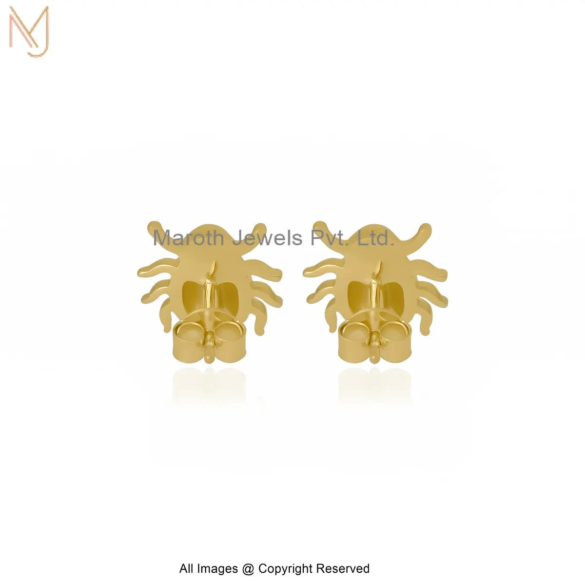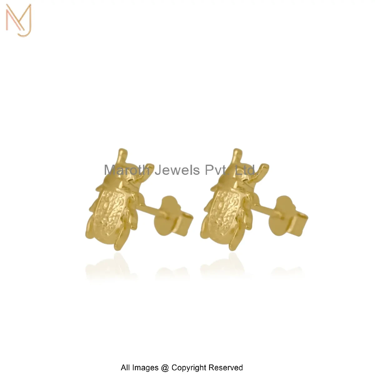 14K Yellow Gold Scarab Stud Earring Jewelry Supplier