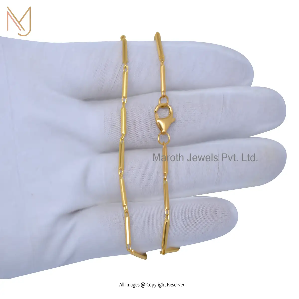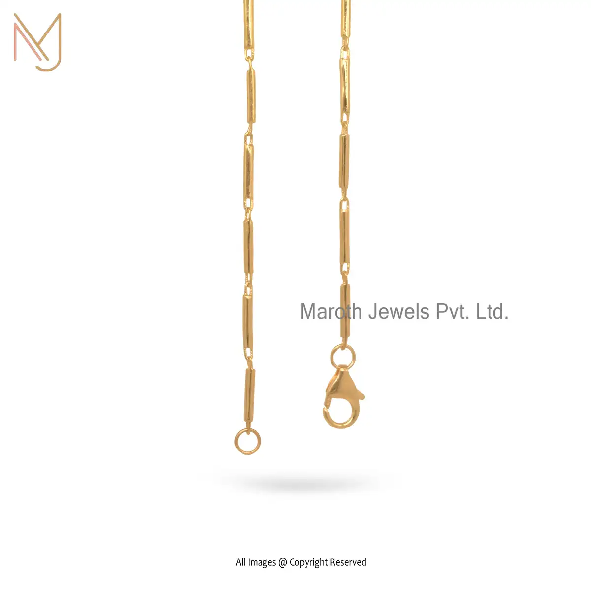 14K Yellow Gold Tube Bar Link Chain Neacklace Jewelry Manufacturer