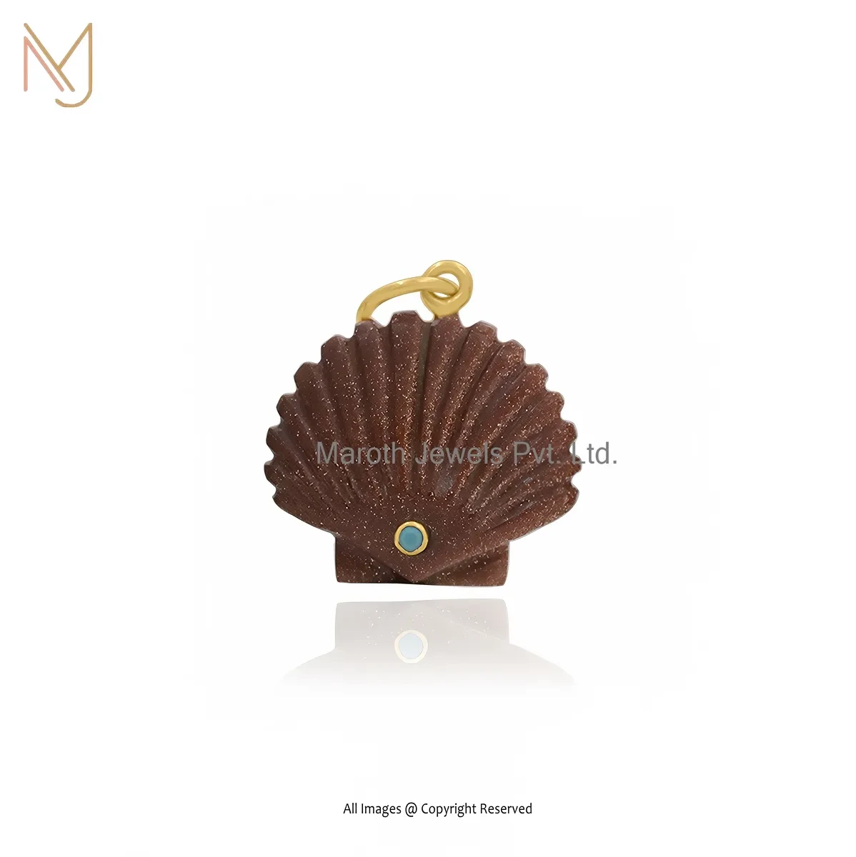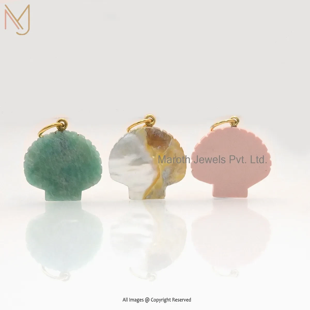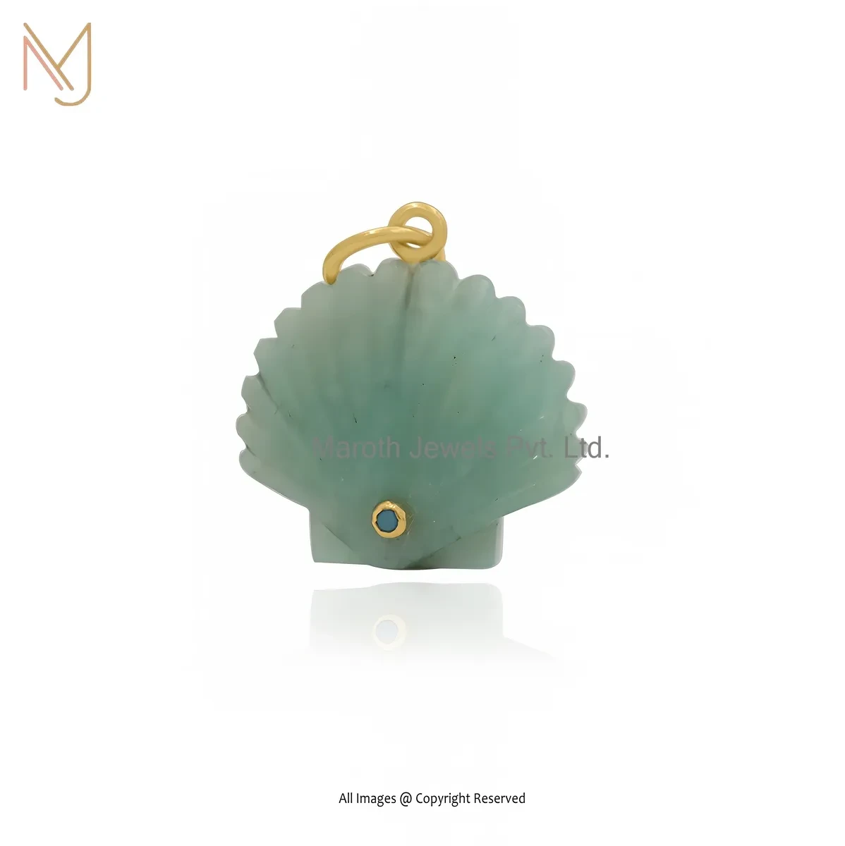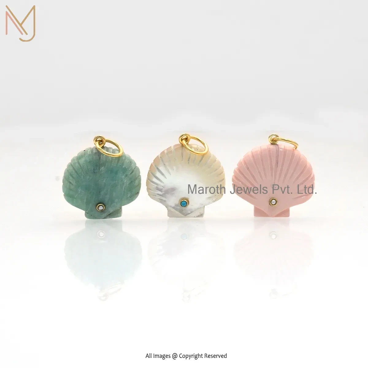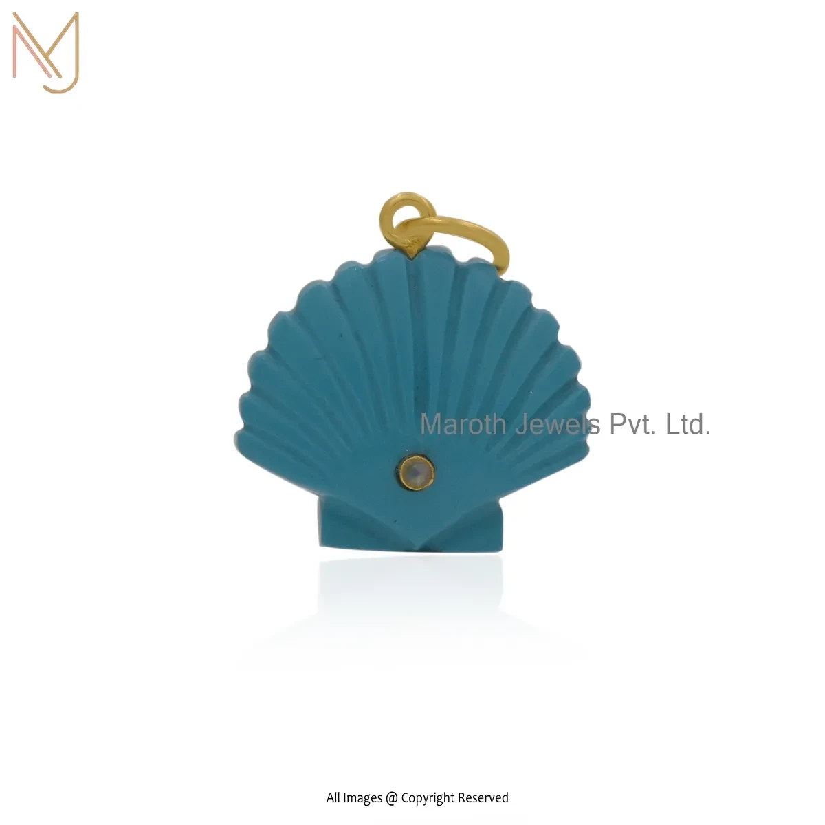 14K Yellow Gold Turquoise & Amazonite Shell Pendant Jewelry Supplier