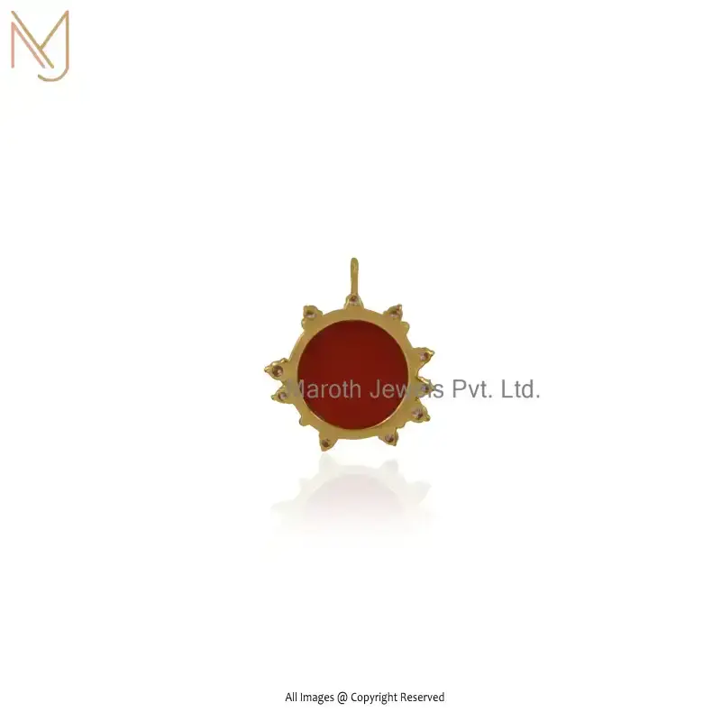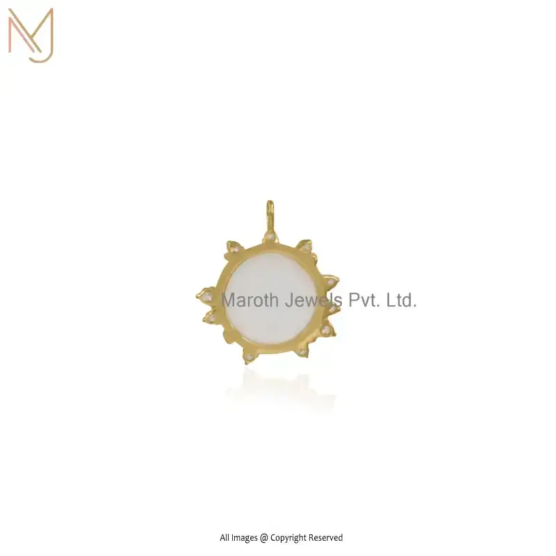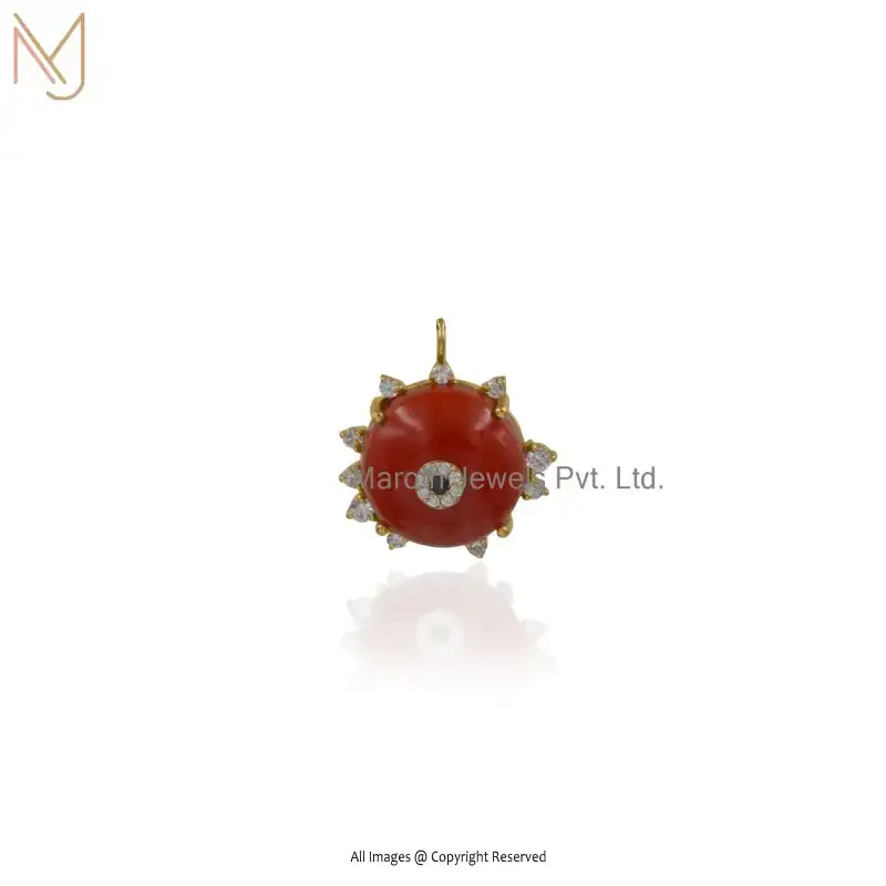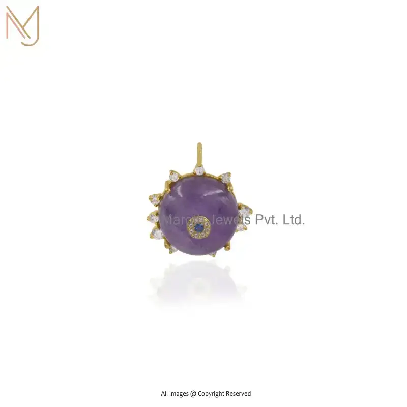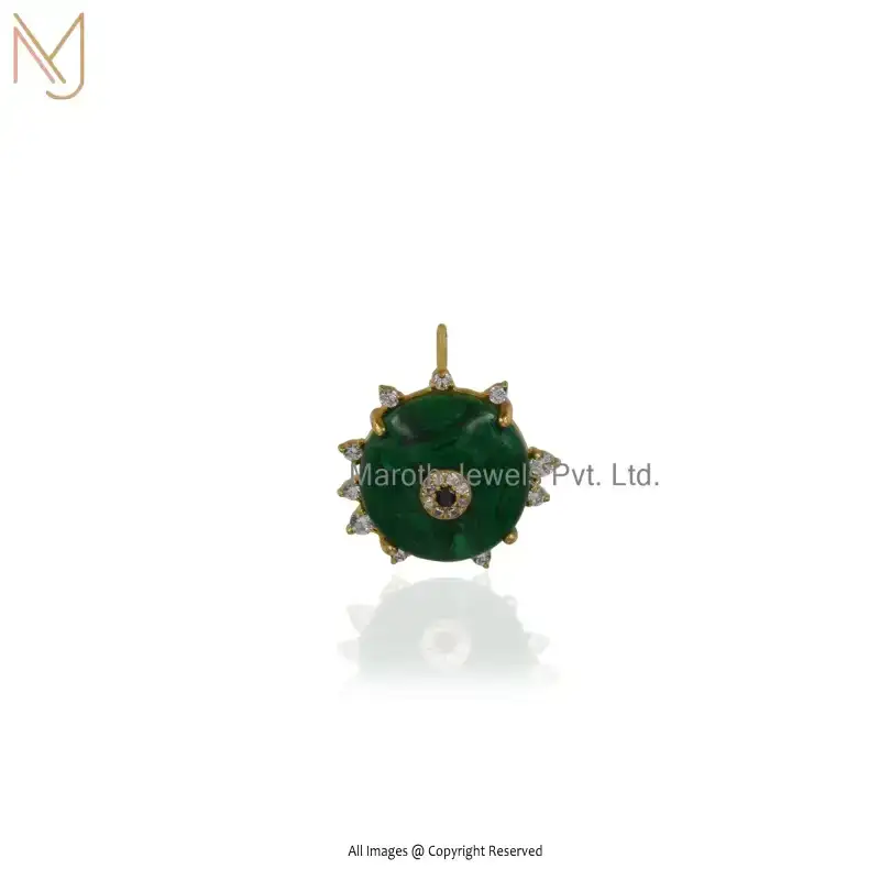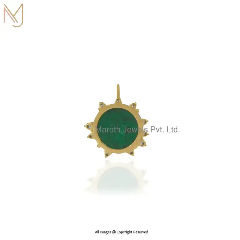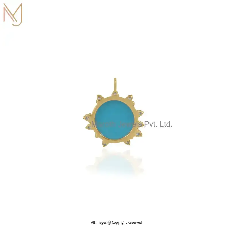 14K Yellow Gold Turquoise And Cubic Zircon Roundcharms Gemstone Pendant USA