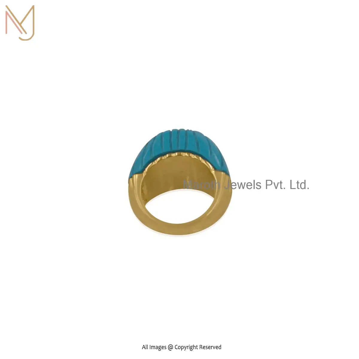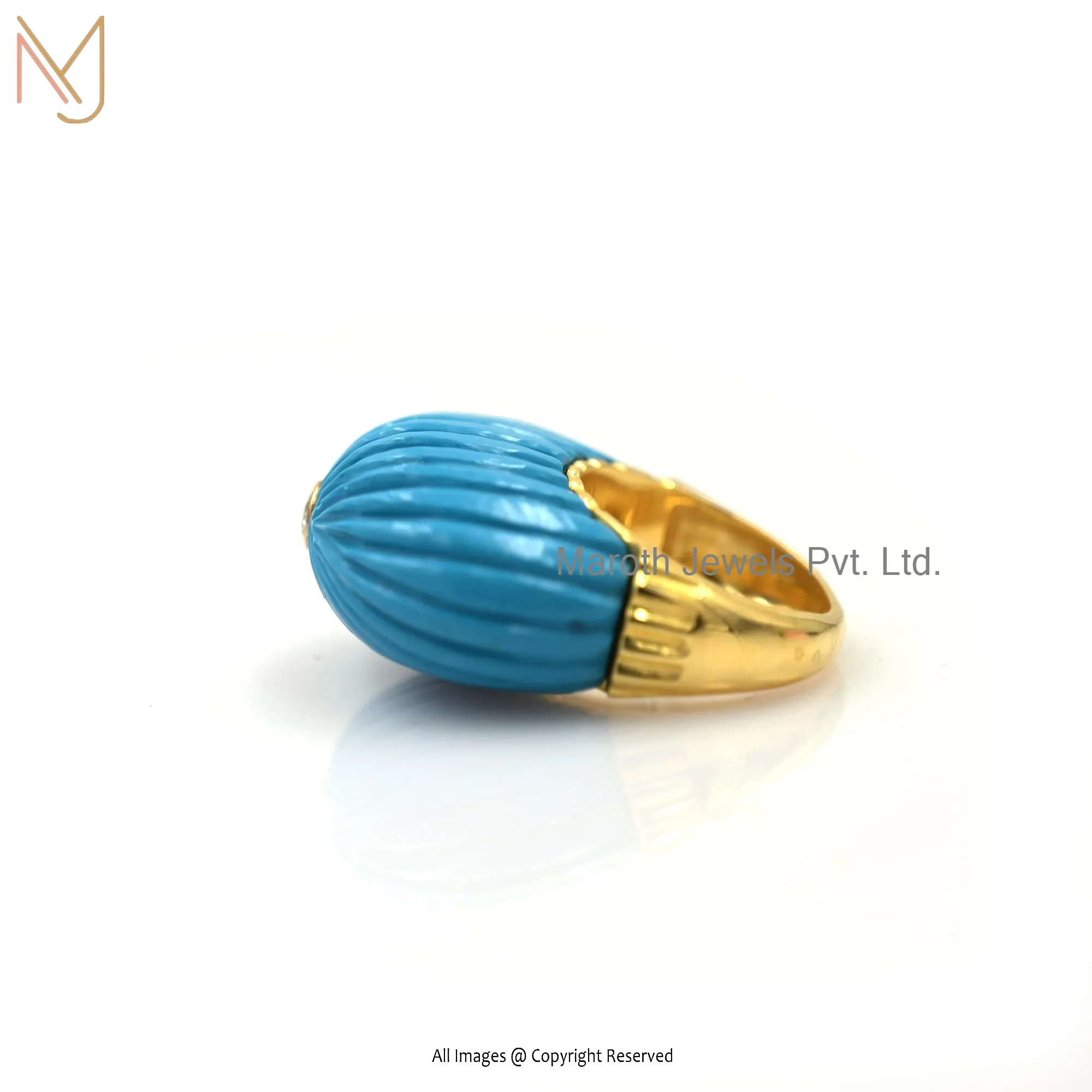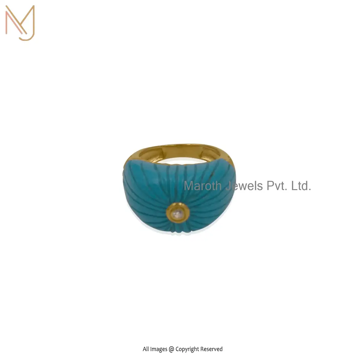 14K Yellow Gold Turquoise Cubic Zircon Flower Motif Ring Custom Jeweliry