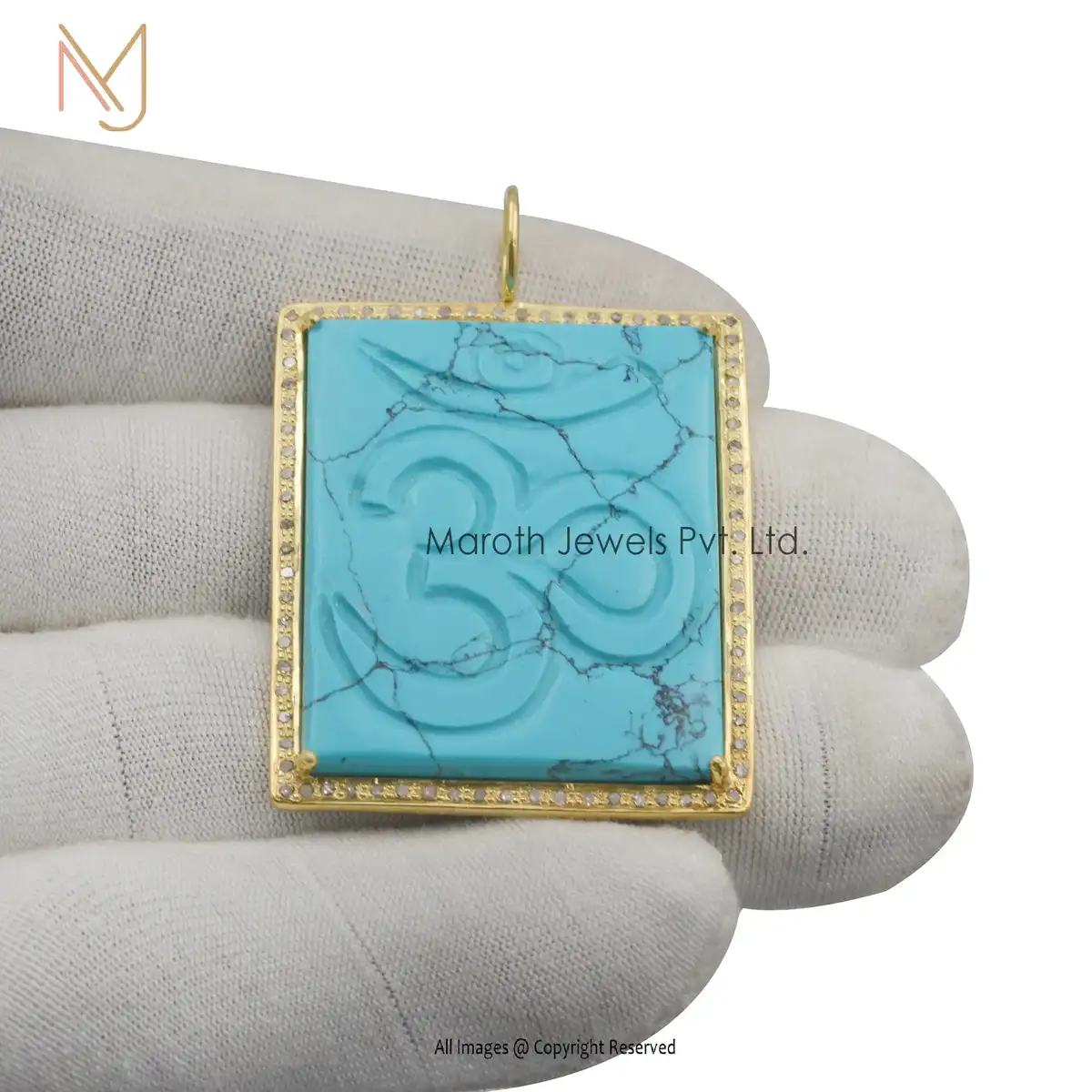 14K Yellow Gold Turquoise & Diamond Square Religious Pendant Custom Jewelry
