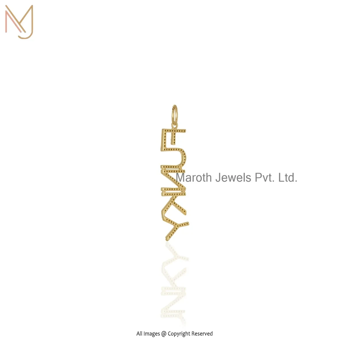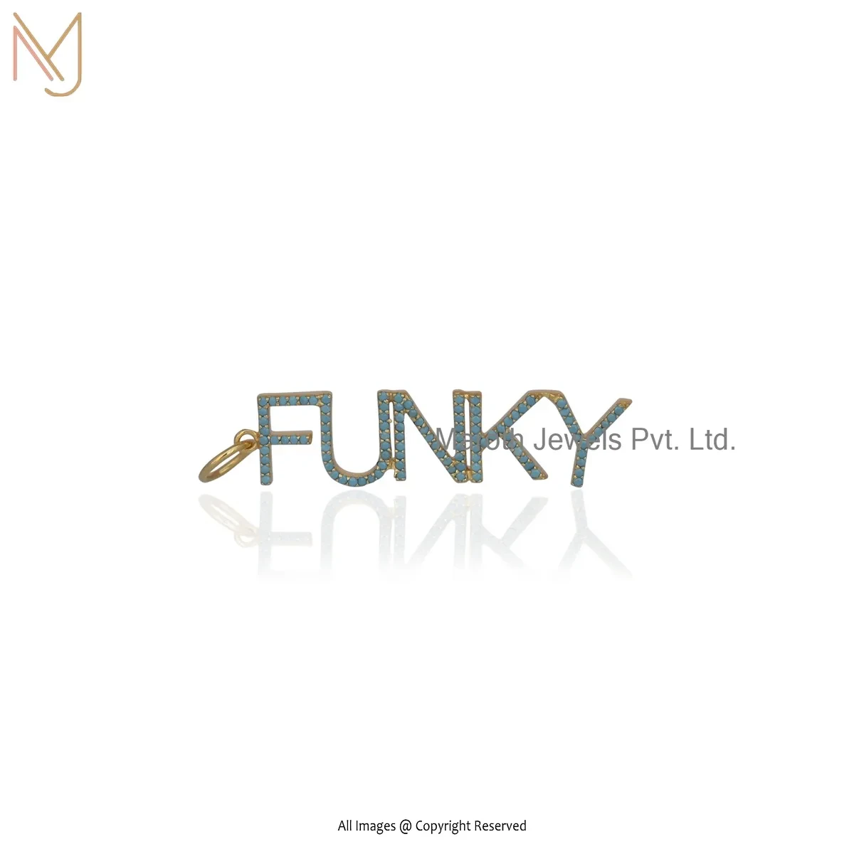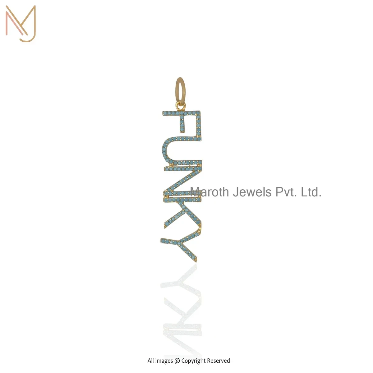 14K Yellow Gold Turquoise Gemstone Name Plate " Funky " Letter Pendant USA