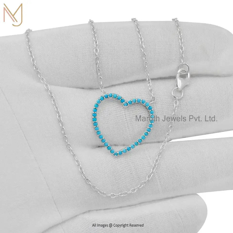 14K Yellow Gold Turquoise Heart Pendant With Chain Necklace Set USA