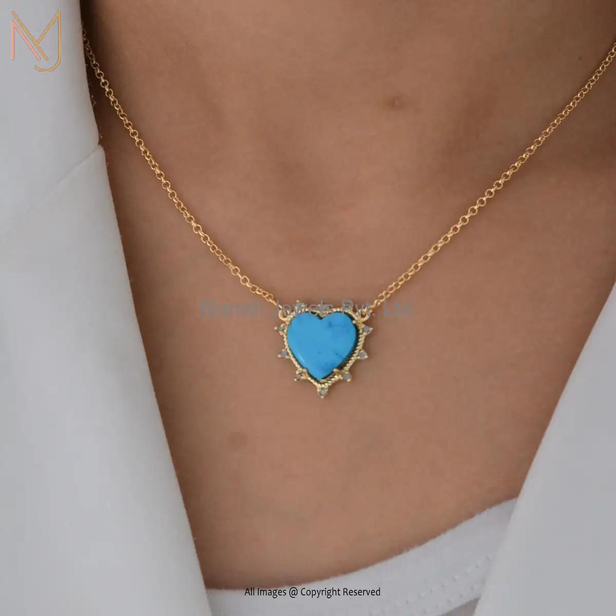 14K Yellow Gold Turquoise & Pink Cubic Zircon Heart Pendant Jewelry Supplier