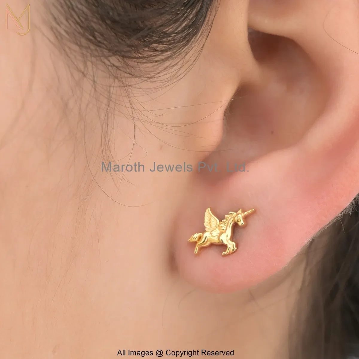 14K Yellow Gold Unicorn Stud Earring Jewelry Supplier
