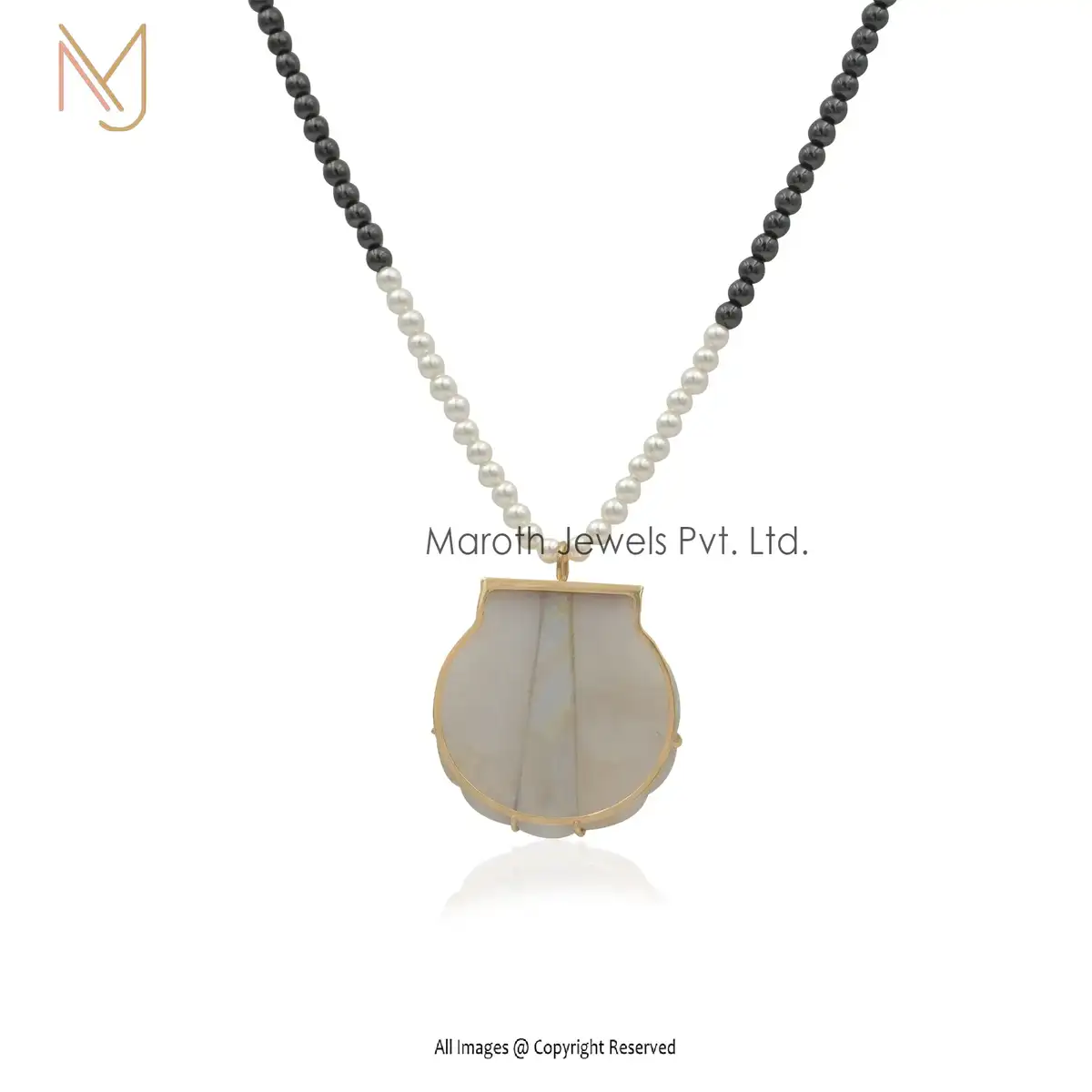 14K Yellow Gold White Agate Rainbow Moonstone Or White Topaz Seashell Pendant USA