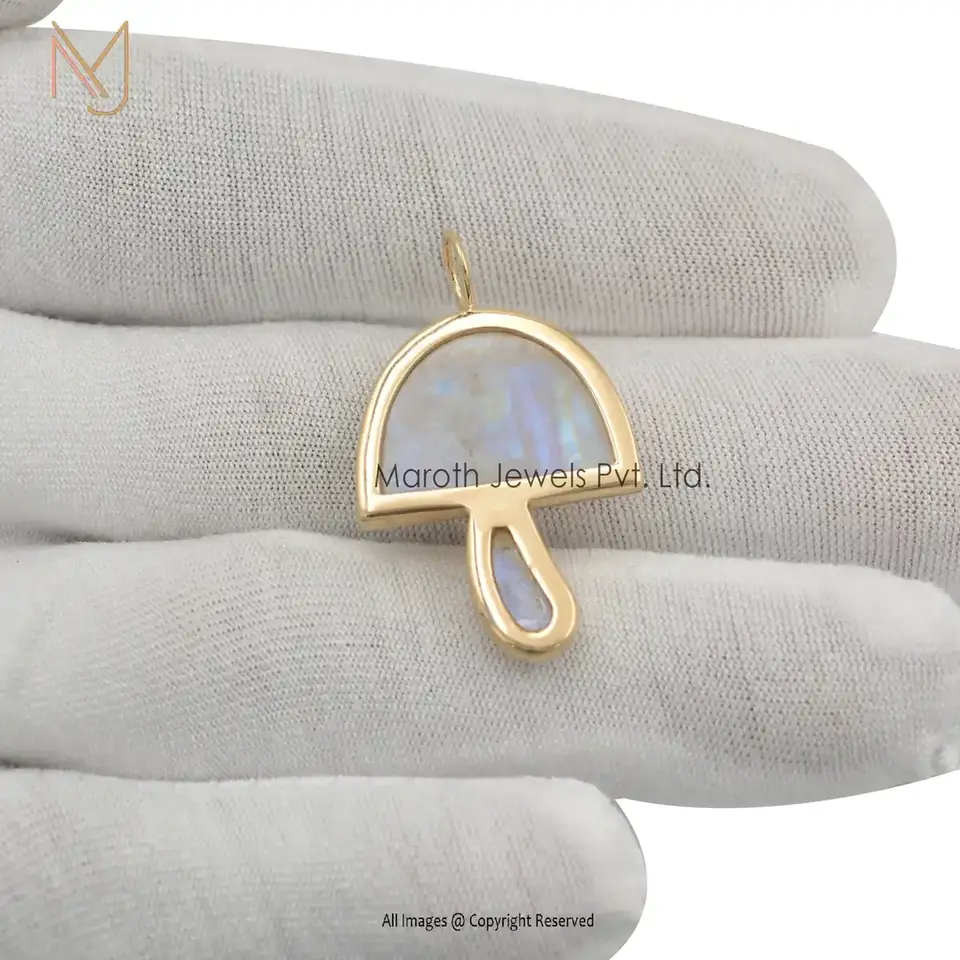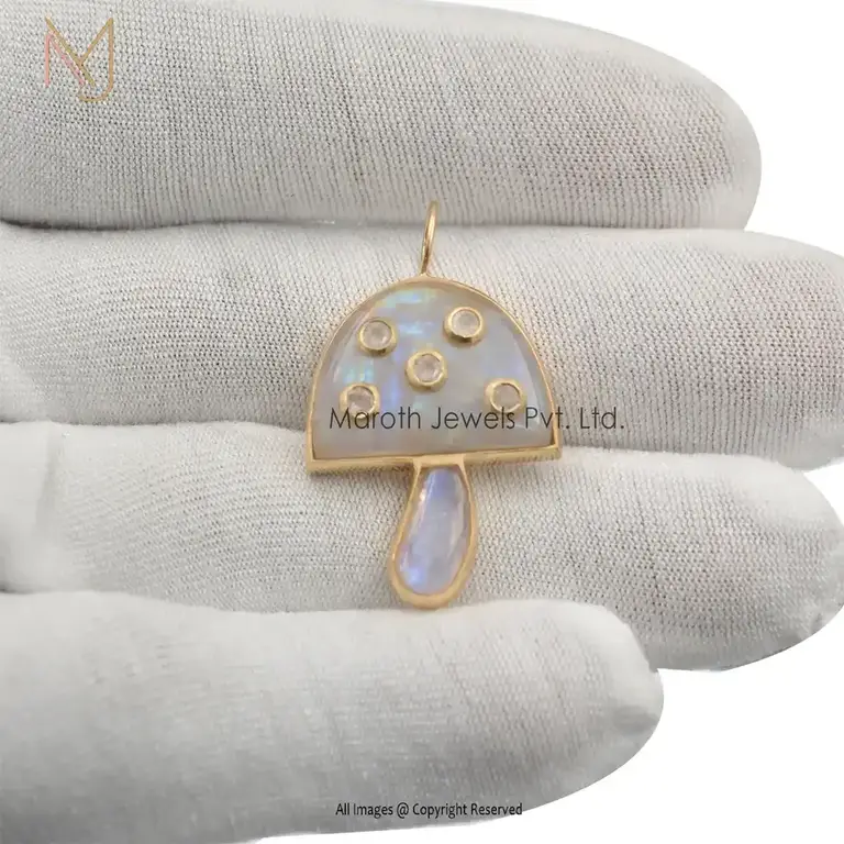 18K Yellow Gold Moonstone Base & Bezel Stone Multi Gemstone Mushroom Jewelry Supplier