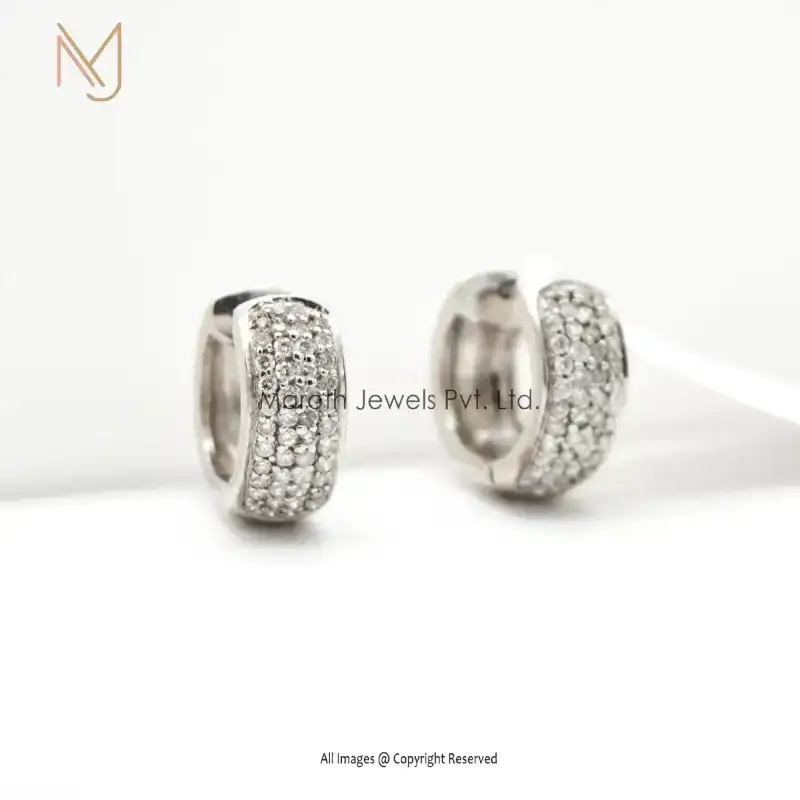 925 Natural Silver Pave Diamond Huggies Earrings Jewelry Manufacturer