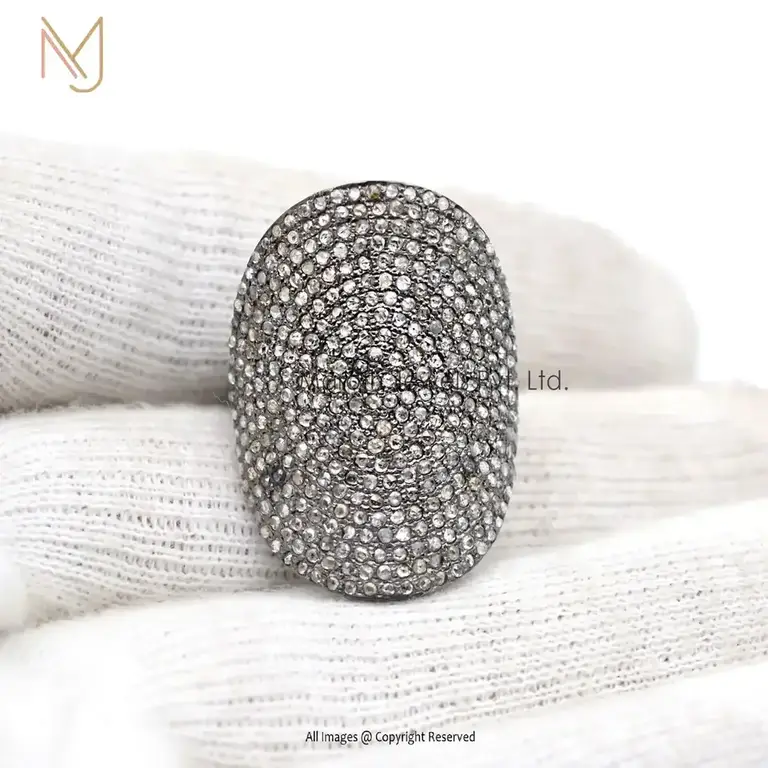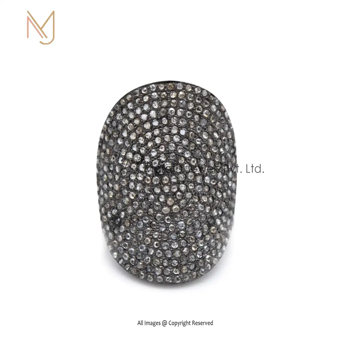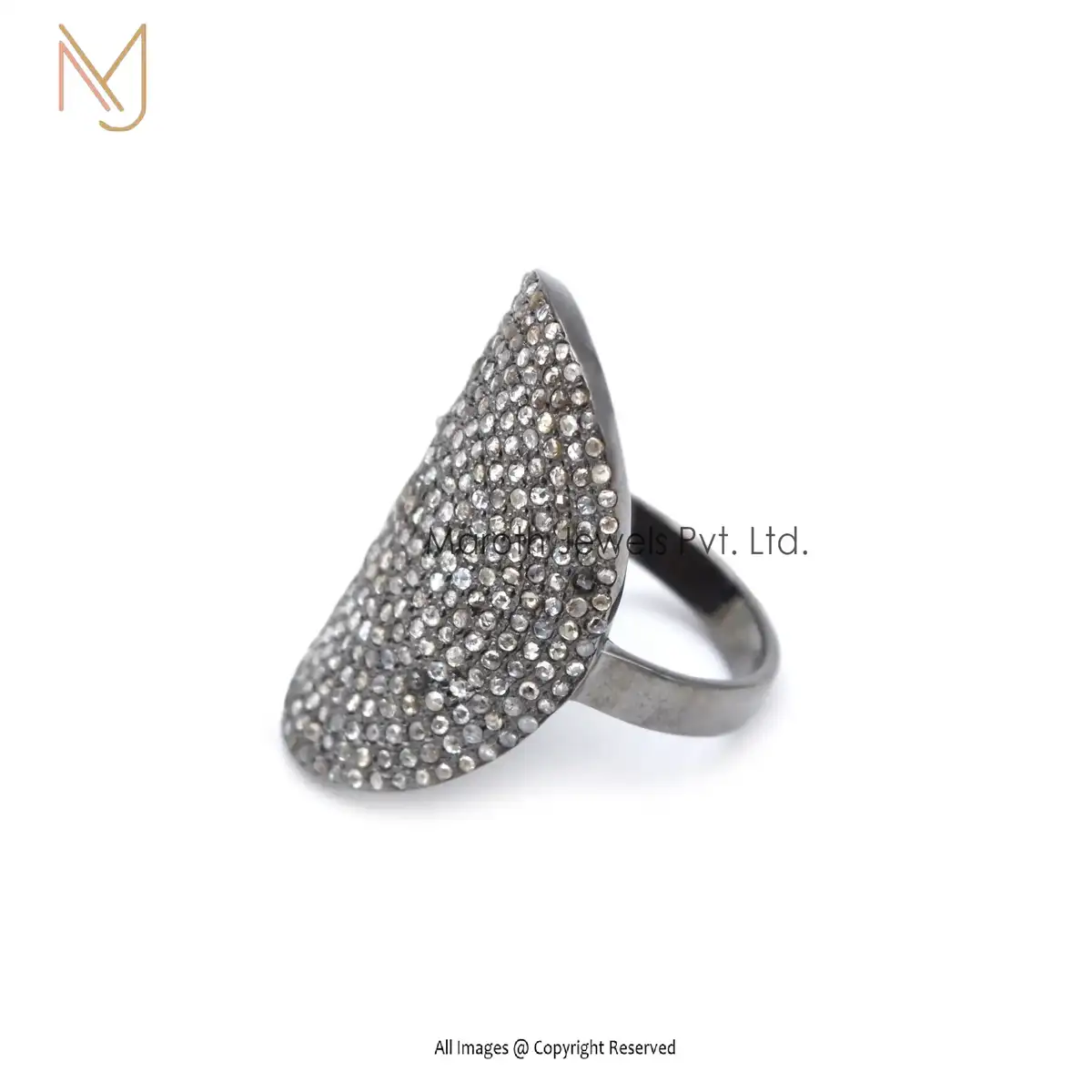 925 Silver Black Rhodium Micro Pave Diamond Ring Jewelry Manufacturer