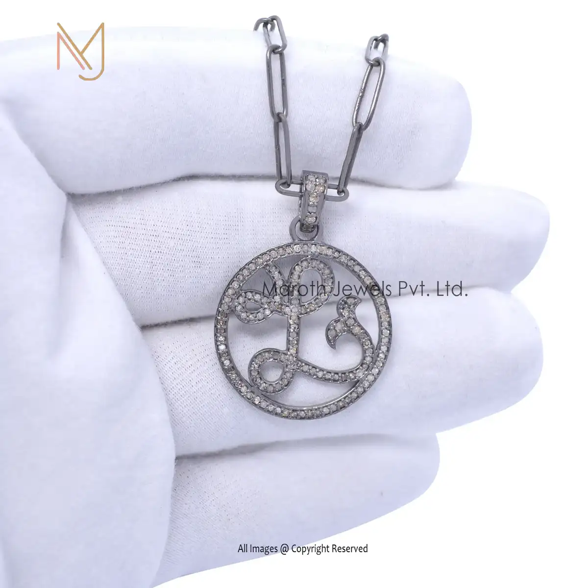 925 Silver Black Rhodium Pave Diamond Letter L Monogram Pendant Manufacturer