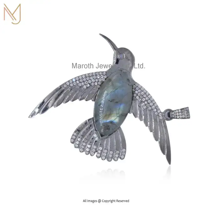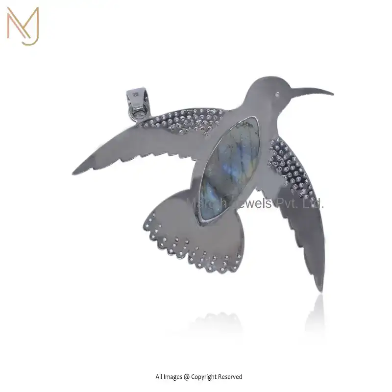 925 Silver Black Rhodium Plated Labradorite Bird Pendant Manufacturer