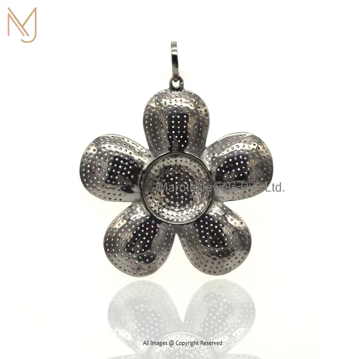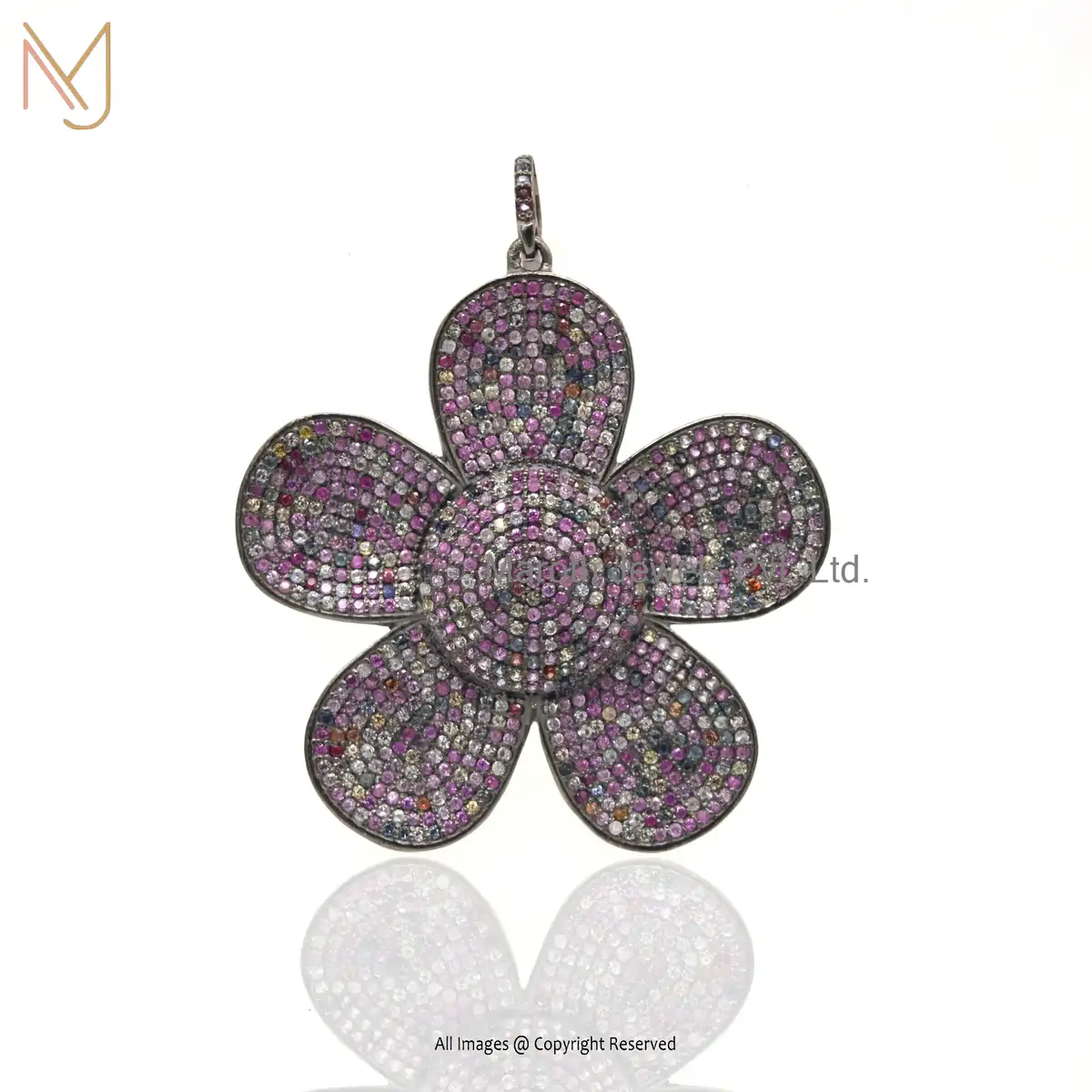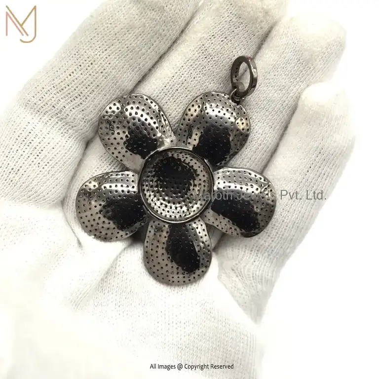 925 Silver Black Rhodium Plated Multi Color CZ Gemstone Flower Pendant Custom Jewelry