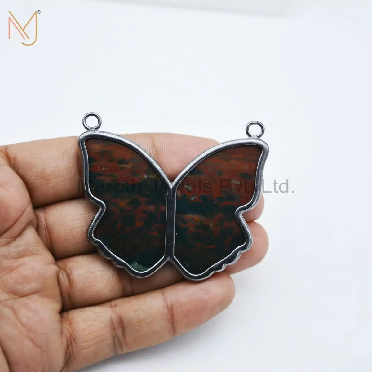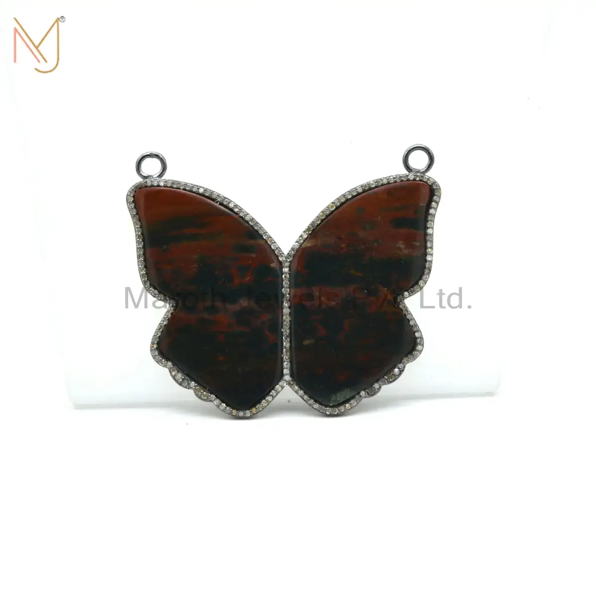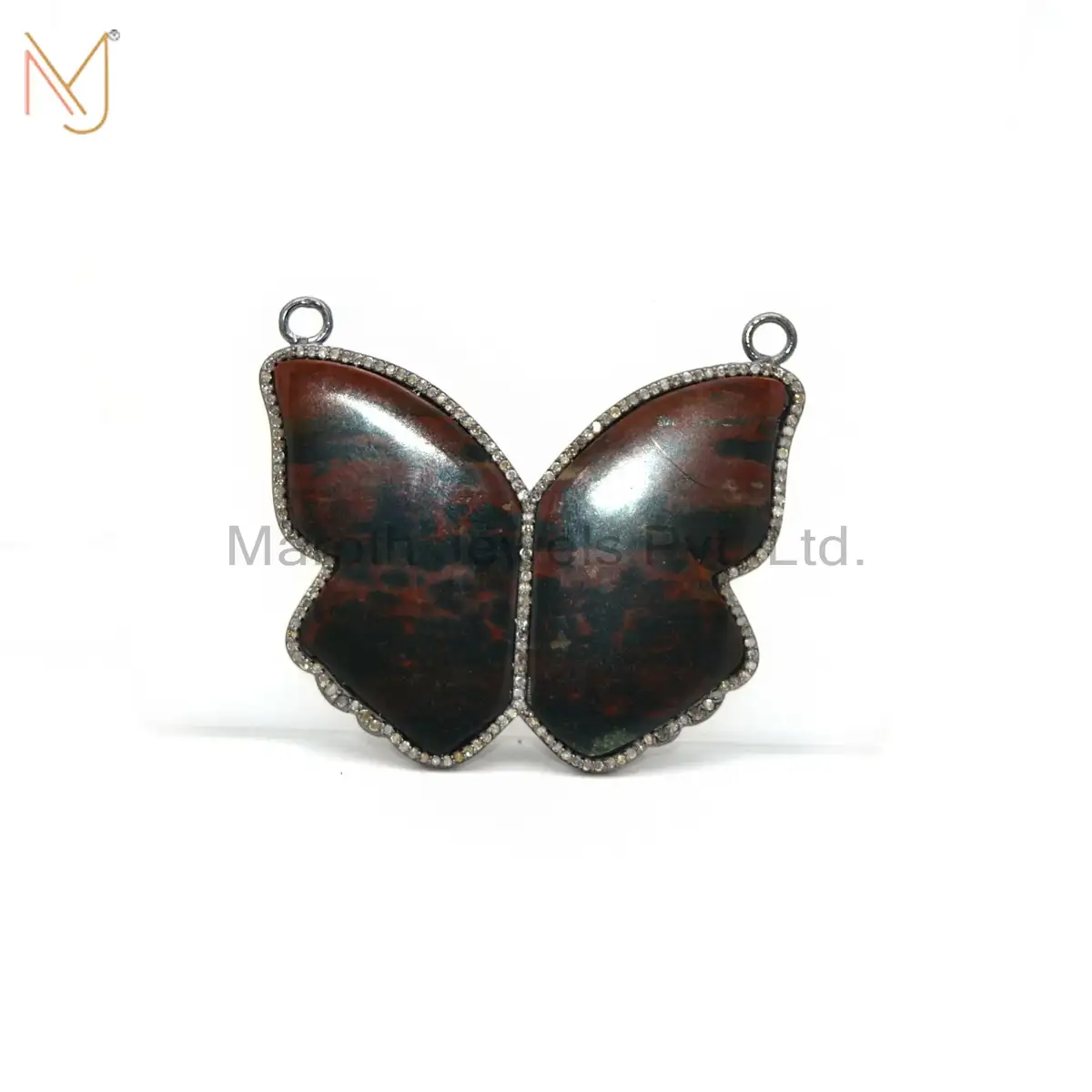 925 Silver Black Rhodium Plated Pave Diamond Blood Stone Butterfilly Pendant Jewelry