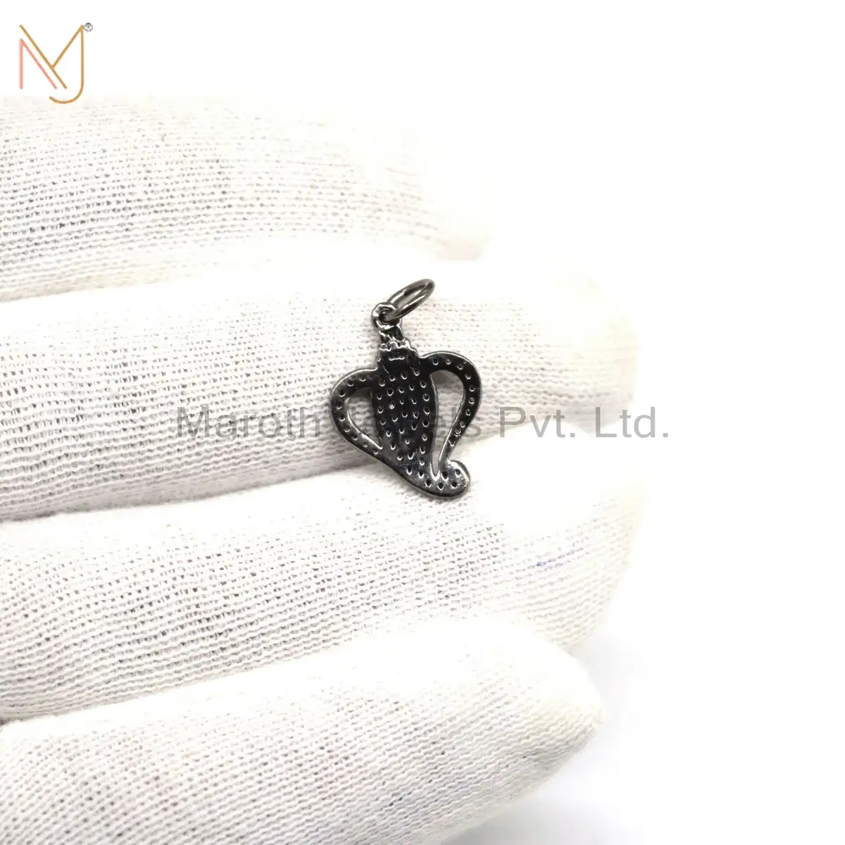 925 Silver Black Rhodium Plated Pave Diamond Charm Custom Jewelry