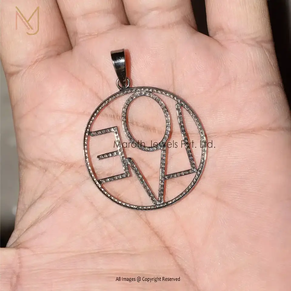925 Silver Black Rhodium Plated Pave Diamond Love Pendant Jewelry Manufacturer