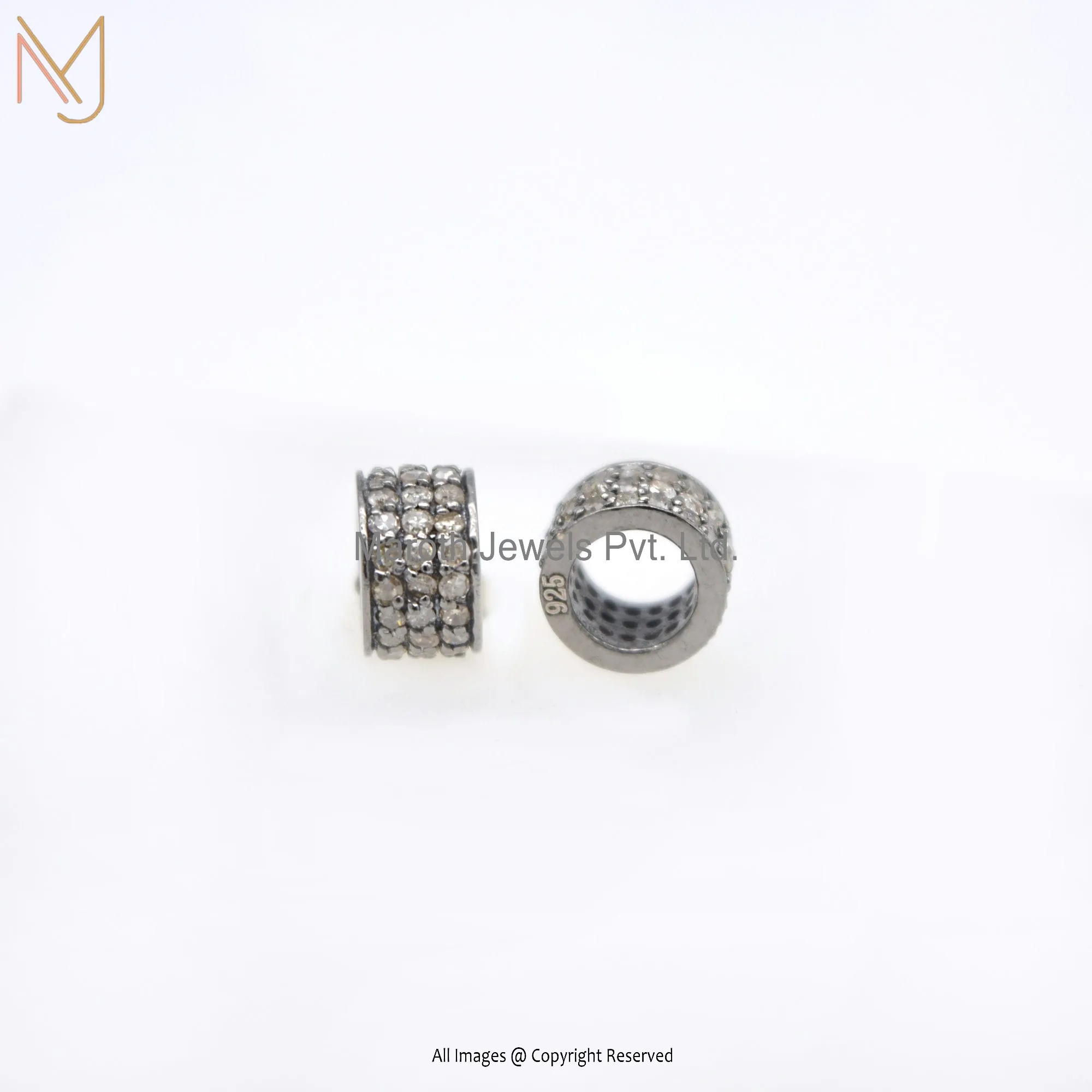 925 Silver Black Rhodium Plated Pave Diamond Rondelle Beads Finding Jewelry Manufacturer