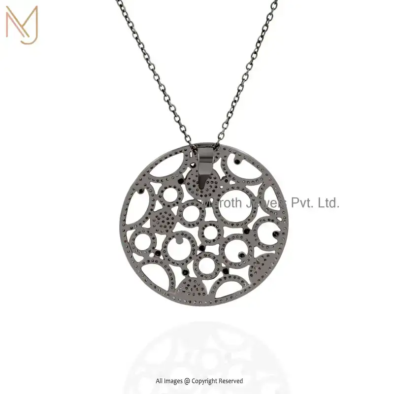 925 Silver Black Rhodium Plated Pave Diamond Round Circle Pendant Jewelry USA
