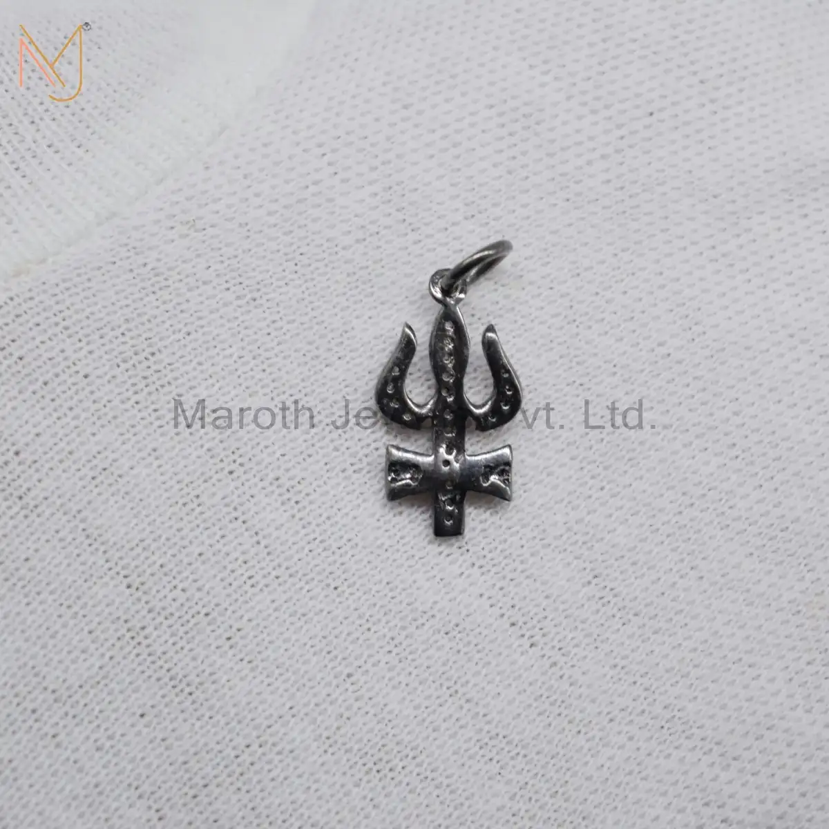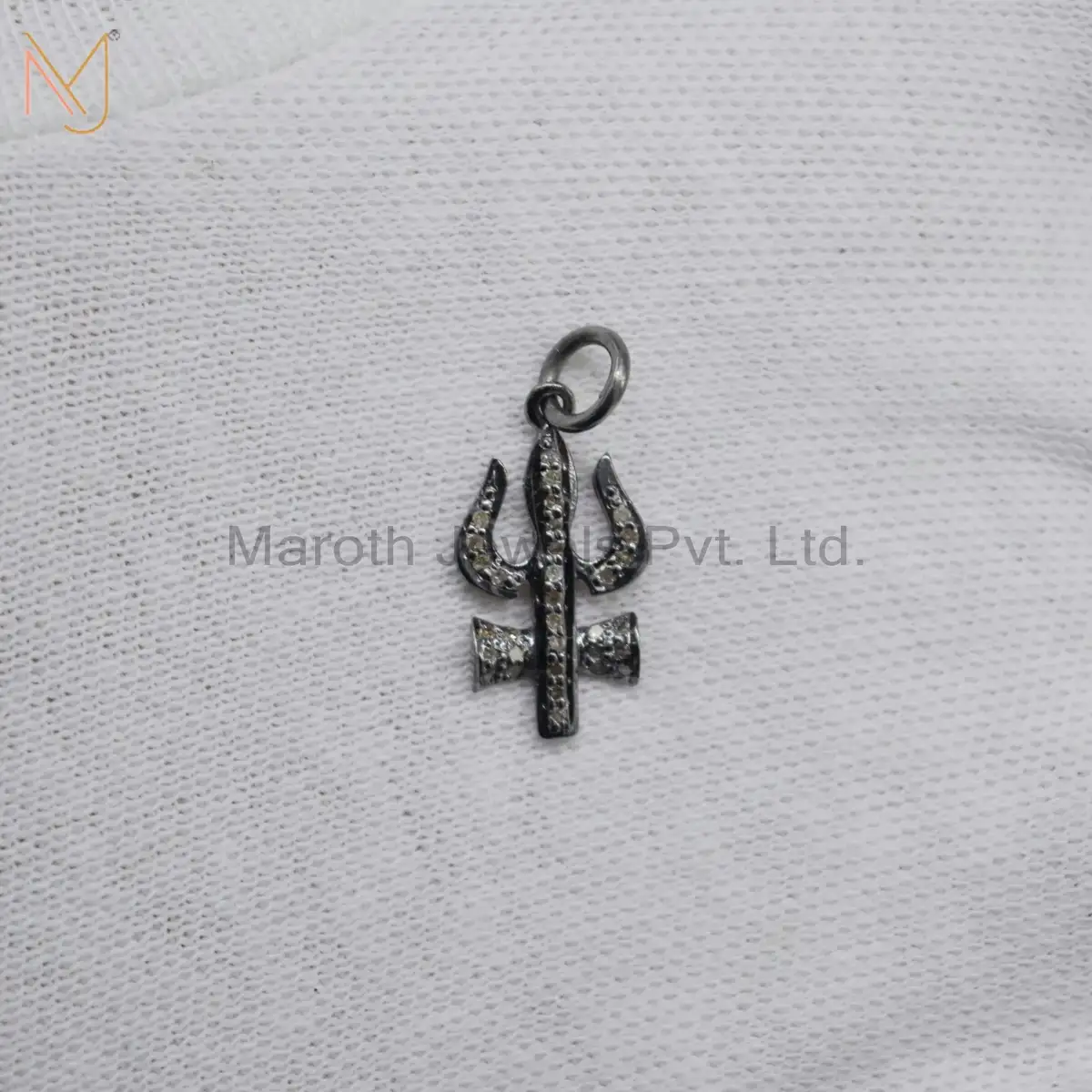 925 Silver Black Rhodium Plated Pave Diamond trishul Pendant Jewelry Supplier
