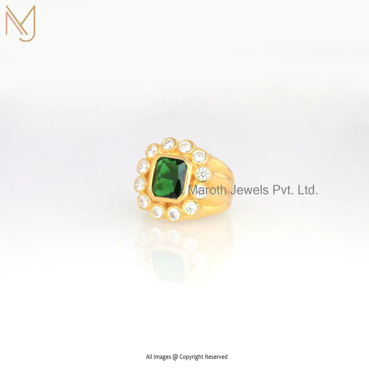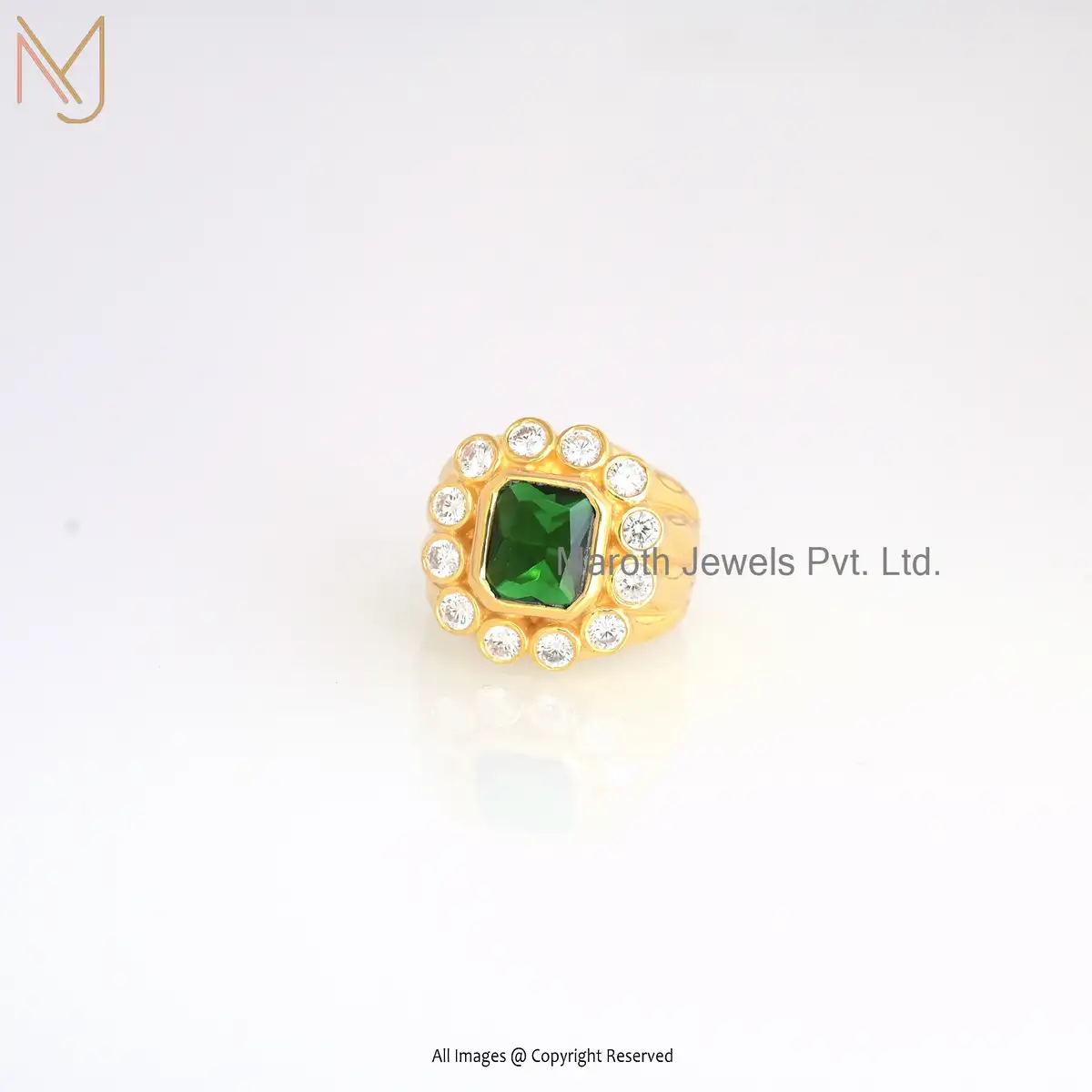 925 Silver Emerald Cz & White Topaz Ring Jewelry Supplier